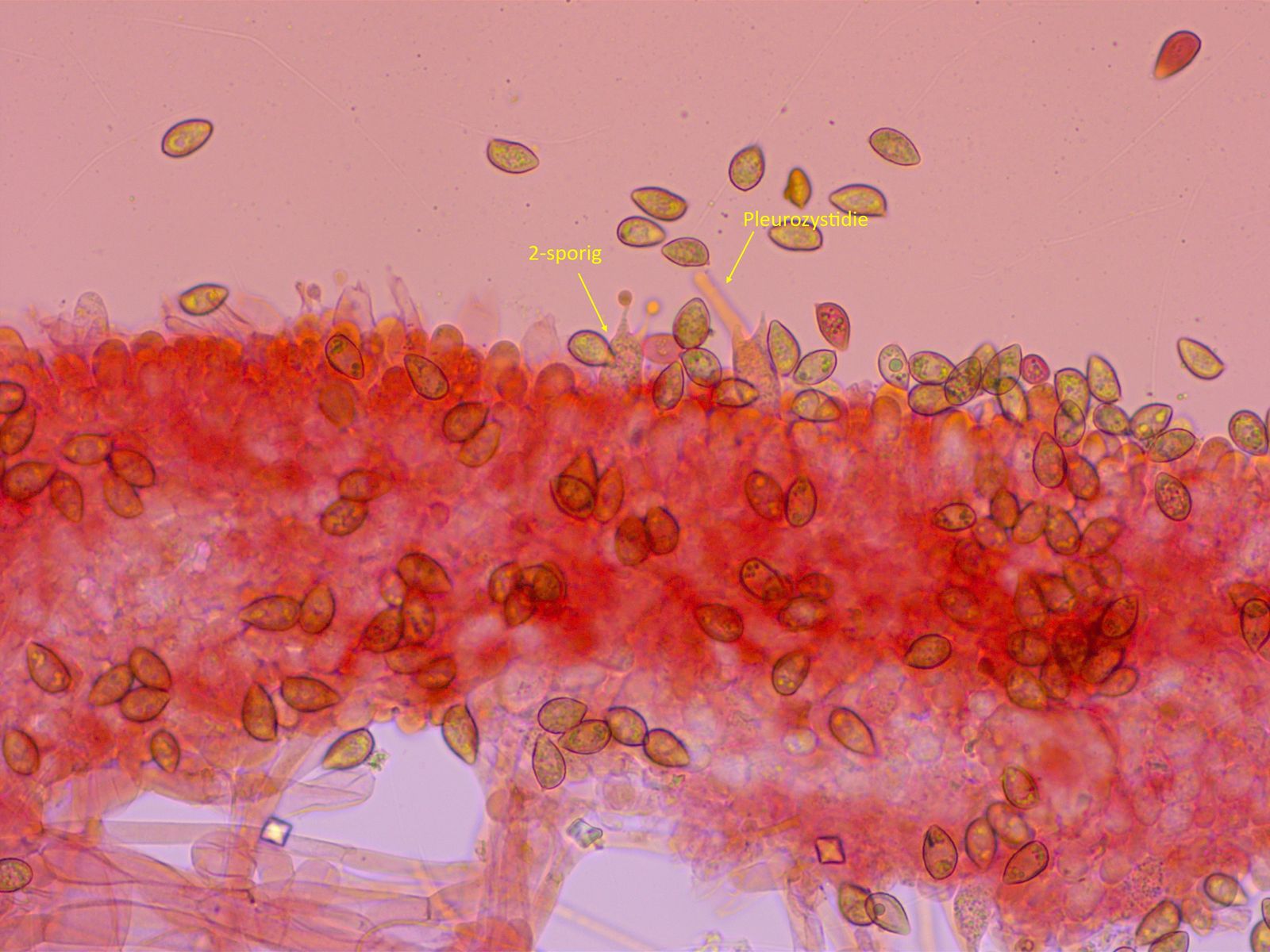 Basidien 2-sporig, Pleurozystiden spärlich aber vorhanden