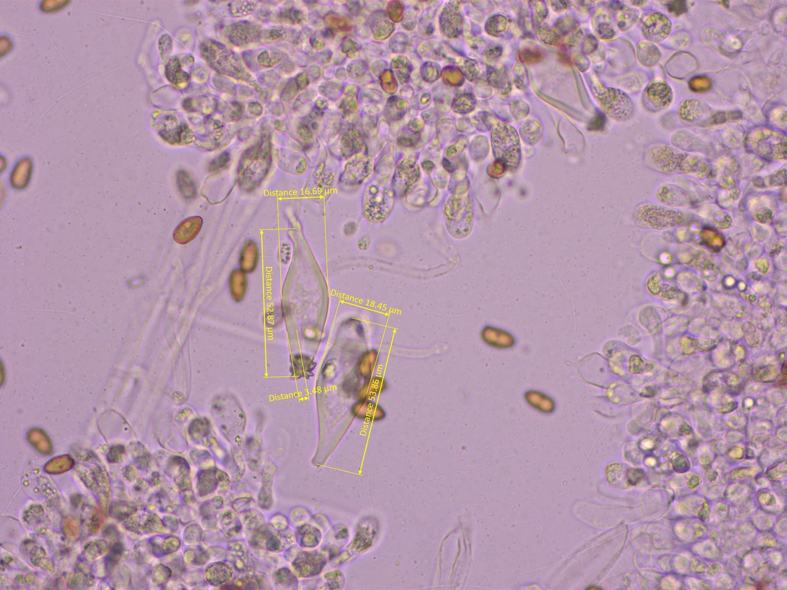 Cheilozystiden auffallend breit, ganz anders als bei meiner letzten Kollektion.