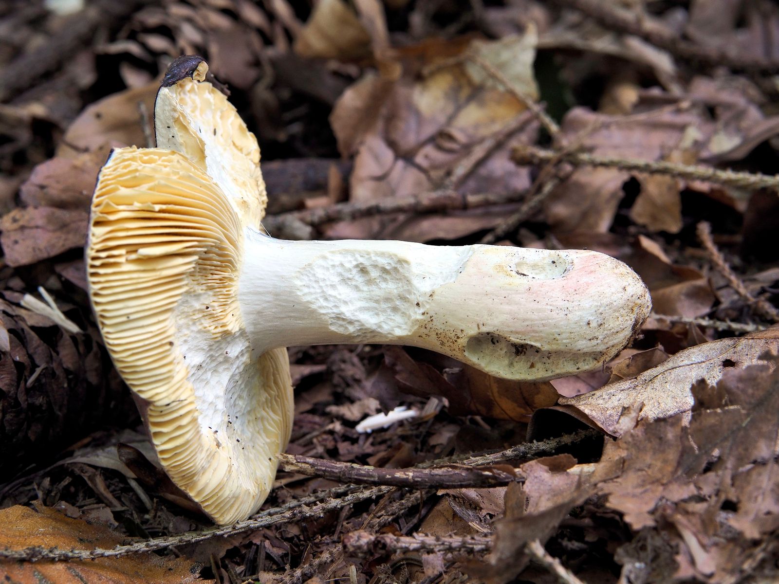 Die Hoffnung, dieses Jahr diesen Pilz erneut zu finden und dann genauer zu untersuchen schwindet, aber ich bin Optimist. Mit meiner Bestimmung schwanke ich zwischen deshalb R. firmula und R. carminipes. Vielleicht kommt auch noch ein anderer unbekannter in Frage, aber ich habe keine weitere Idee mehr. (keine Bestimmungsanfrage, aber Ideen sind herzlich willkommen) Trotzdem mal paar Bilder von einem Fund...