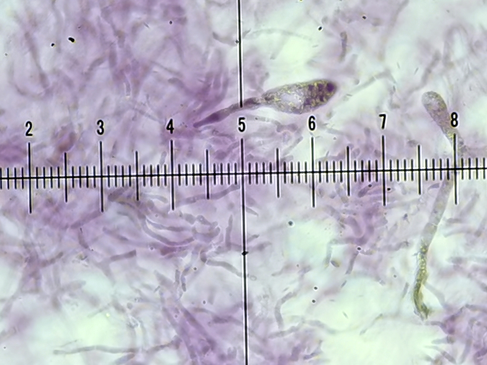Der Hintergrund meines Dilemmas ist die quälende und ausbleibende Bestimmung eines braun/schwarz/violetten Täublings den ich seit zwei Jahren immer am gleichen Platz am Rand von Fichtenwald aber direkt unterhalb einer kleinen Hainbuche finde. Schmächtige Figur, bereift, rötlich behauchter Stiel ockergelben Lamellen, Spo weitgehend isoliert, incr. Dz und incr. Primordialhyphen vorhanden und das Schönste daran: nie ein Sporenpulverabwurf erhalten. Der Geschmack war mild bis auf einen jungen Fruchtkörper auch leicht pikant scharf.