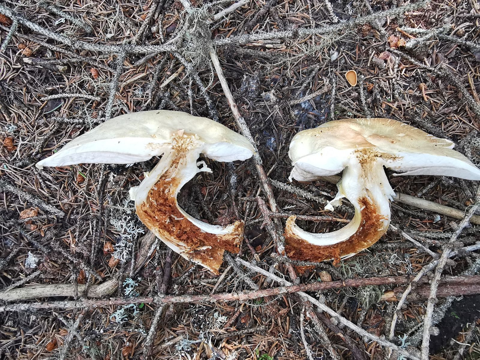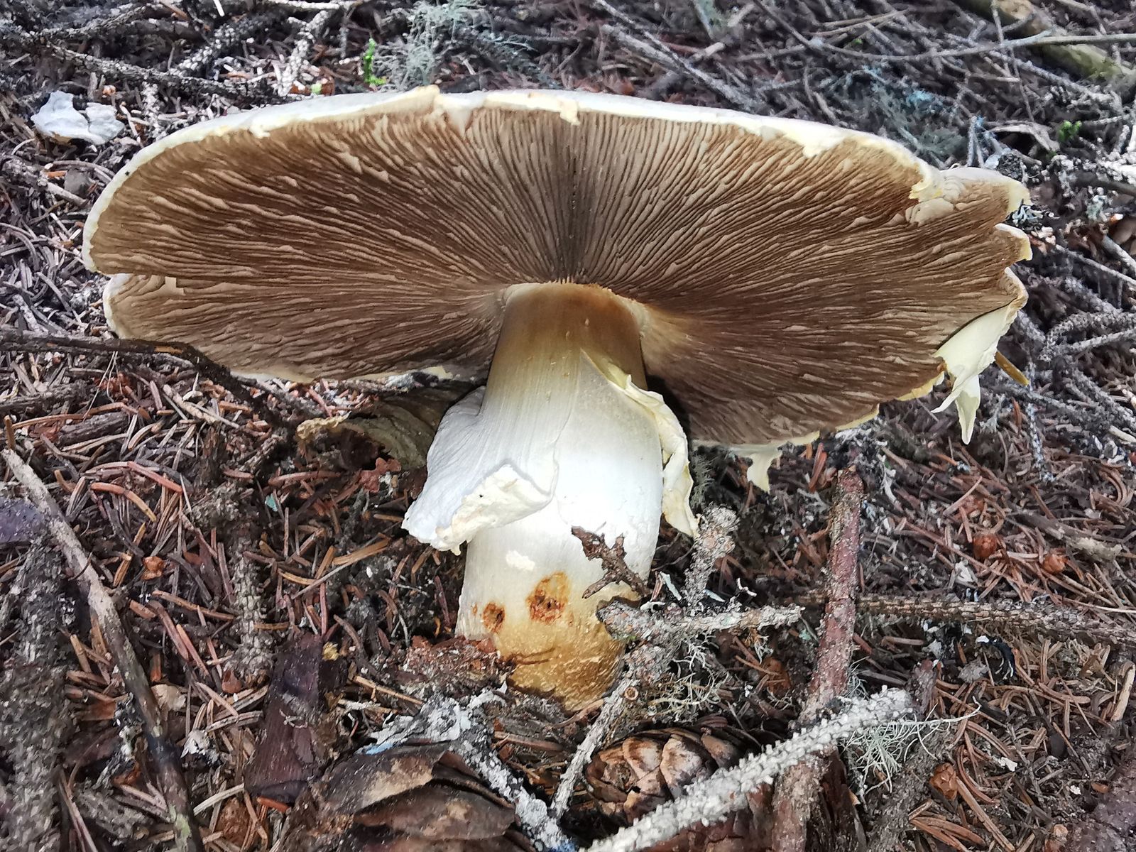 Zuerst mal zum Champignon. Gefunden habe ich ihn im Nadelstreu bei einer Fichte auf ca. 1600m ü.M.. Sehr starker Geruch nach Anis, gilbt bei Berührung schnell und ist sehr schiefknollig. Meine Vermutung ist der Schiefknollige Anischampignon (Agaricus essettei), allerdings käme vermutlich auch der Dünnfleischige Anischampignon (Agaricus silvicola) in Frage. Gibt es da etwas makroskopisches, um die zwei Arten auseinanderzuhalten oder gibt nur die Grösse der Sporen darüber Aufschluss? Hier noch die Fotos: