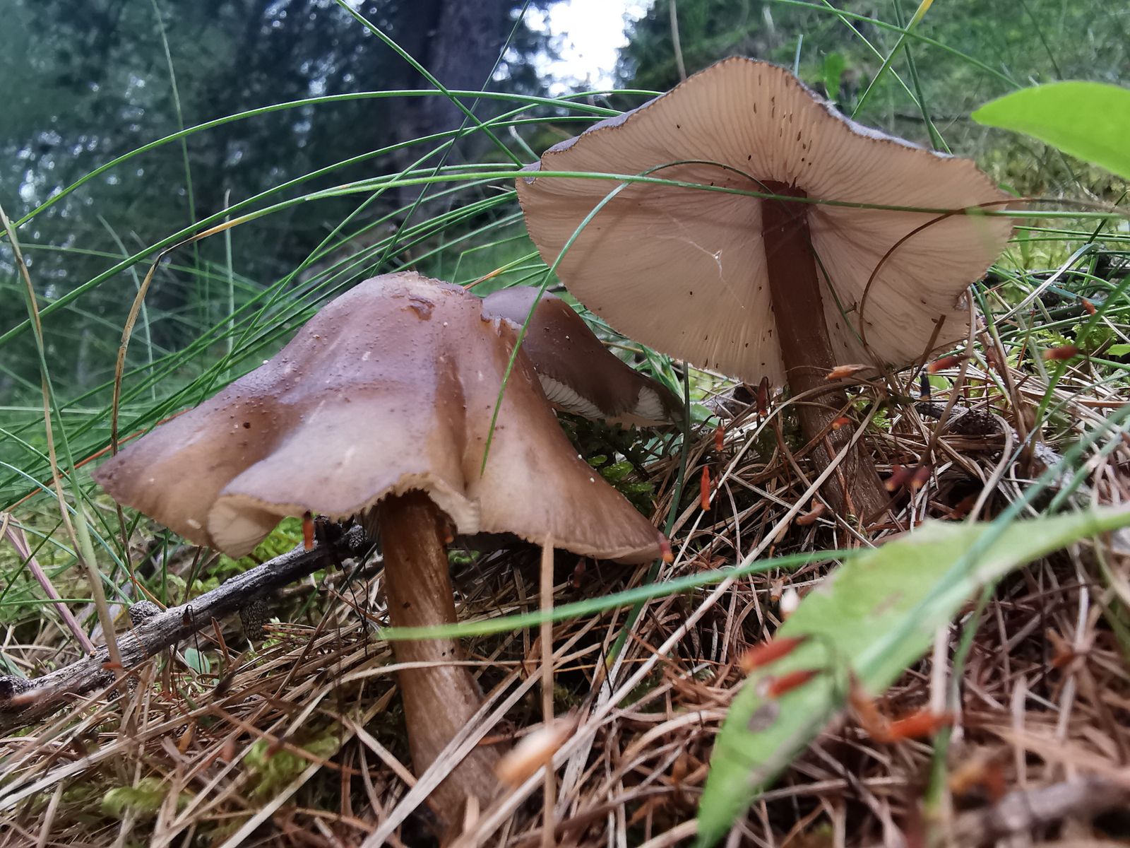 Direkt daneben standen die folgenden braunen Kollegen. Auch hier komme ich zu keiner passenden Bestimmung. Vielleicht ein Rübling oder ein Helmling. Bei solchen Pilzen habe ich leider noch sehr wenig Ahnung.