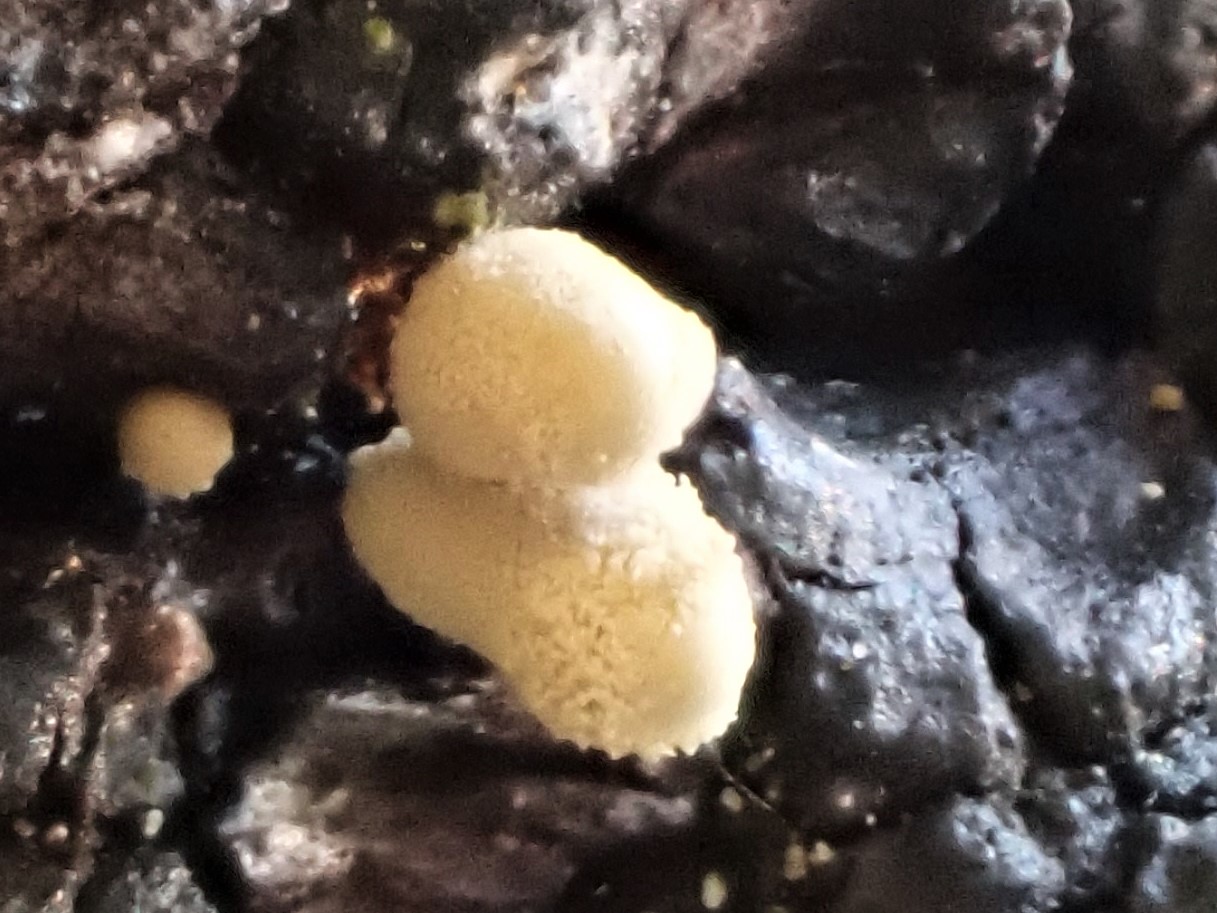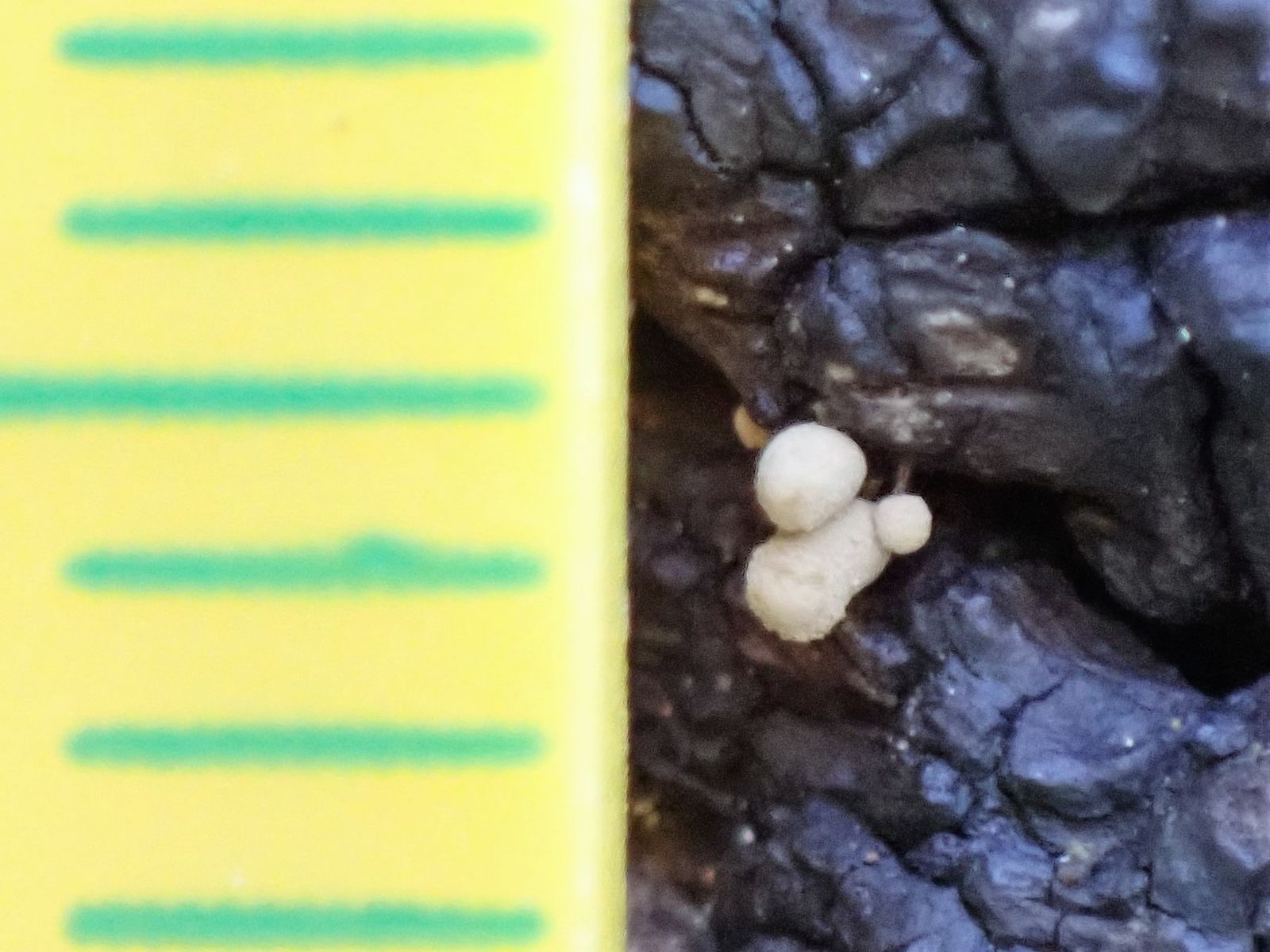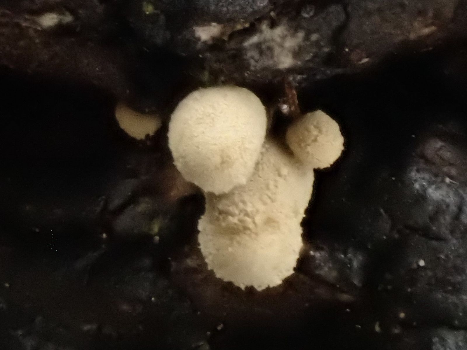 diesen Schleimpilz habe ich an der Unterseite von einem toten Ast gefunden, der schon länger im Garten liegt.