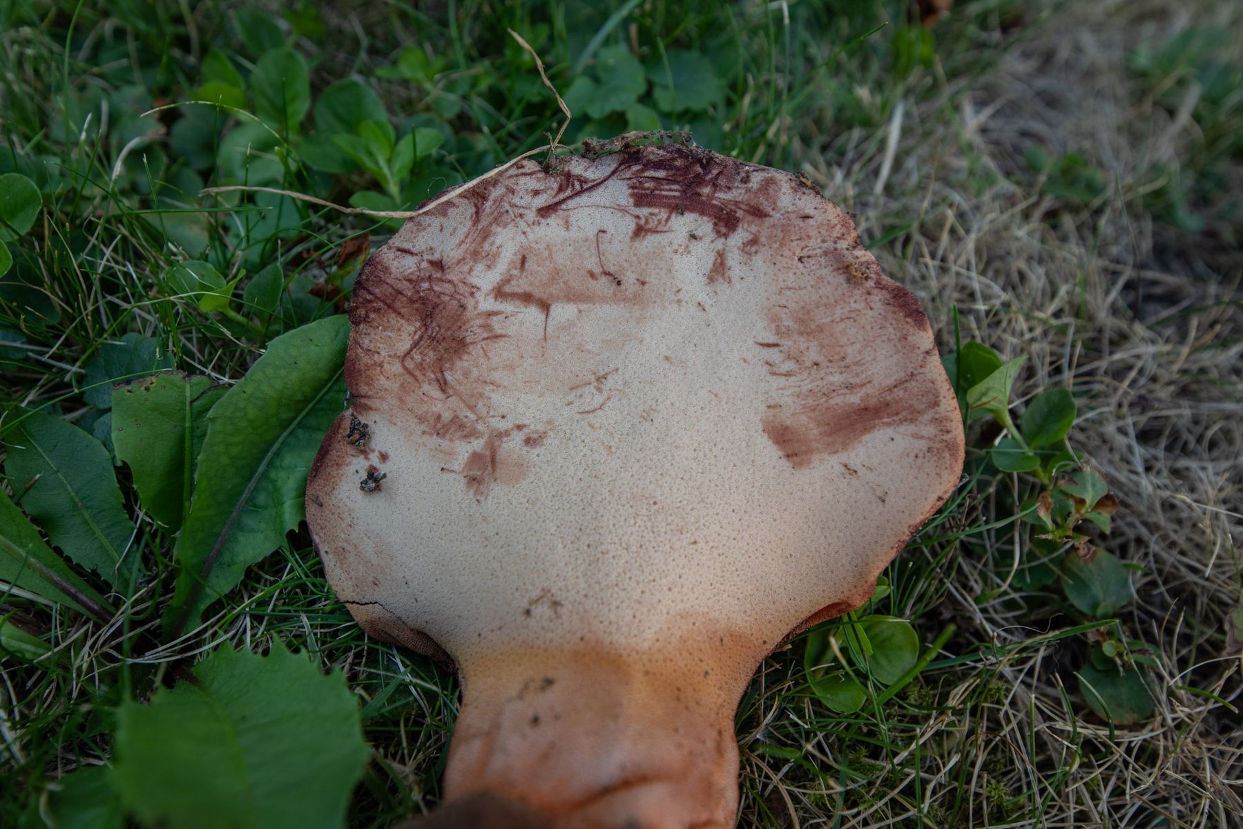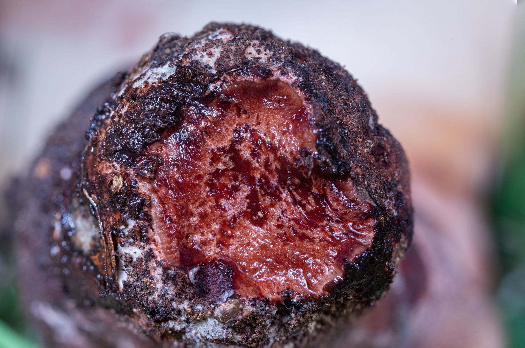 Die Hutoberseite erinnert in der Färbung ein wenig an eine Rotkappe.