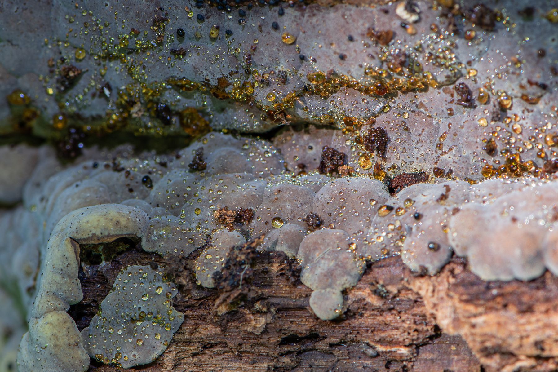 Abgesehen von den wirklich ausgeprägten Hutkanten schaut das wirkklich total nach Xylobolus aus. Für einen Moment hatte ich überlegt, ob da die Fruchtkörper von zwei ganz veschiedenen Arten durcheinanderwachsen (zB Stereum rugosum + Xylobolus frustulatus), auf den zweiten Blick gehört das aber wohl schon alles zusammen.