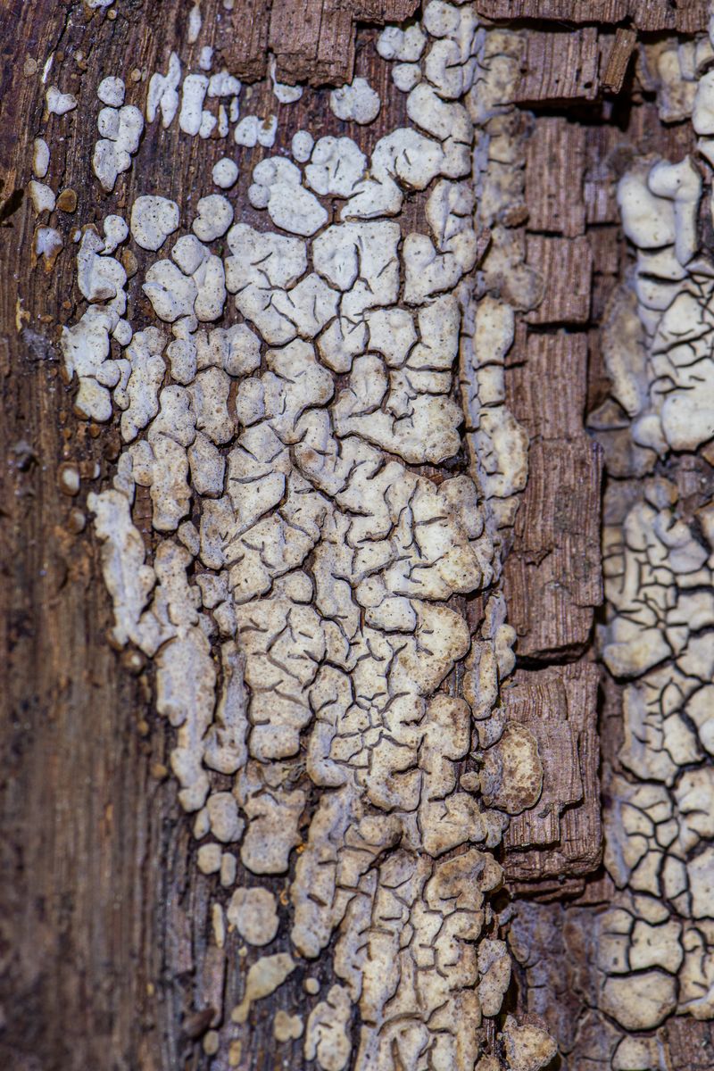 Abgesehen von den wirklich ausgeprägten Hutkanten schaut das wirkklich total nach Xylobolus aus. Für einen Moment hatte ich überlegt, ob da die Fruchtkörper von zwei ganz veschiedenen Arten durcheinanderwachsen (zB Stereum rugosum + Xylobolus frustulatus), auf den zweiten Blick gehört das aber wohl schon alles zusammen.
