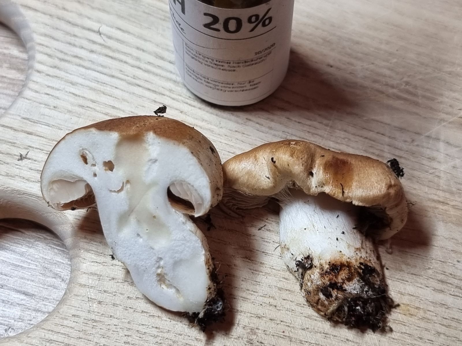 Leider nur diese beiden. Velum weiss, Geruch ein Gemisch aus fruchtig und rettichartig.
