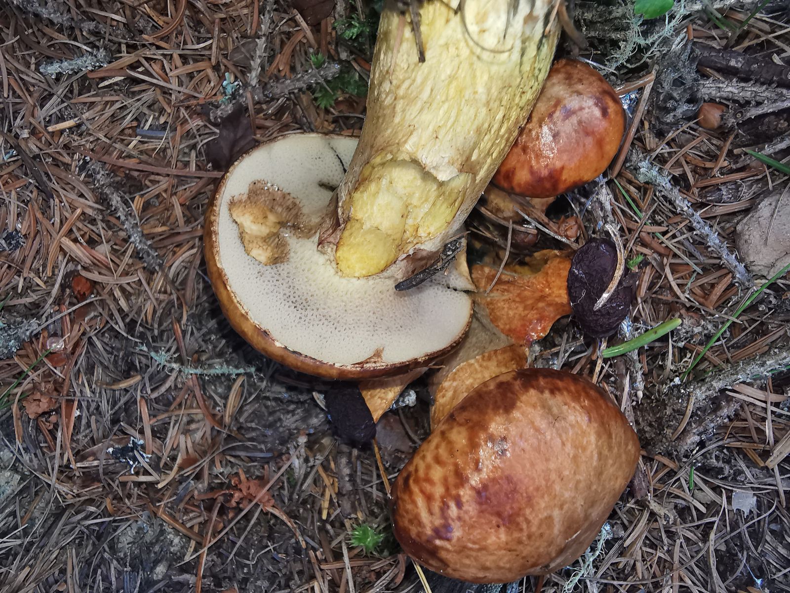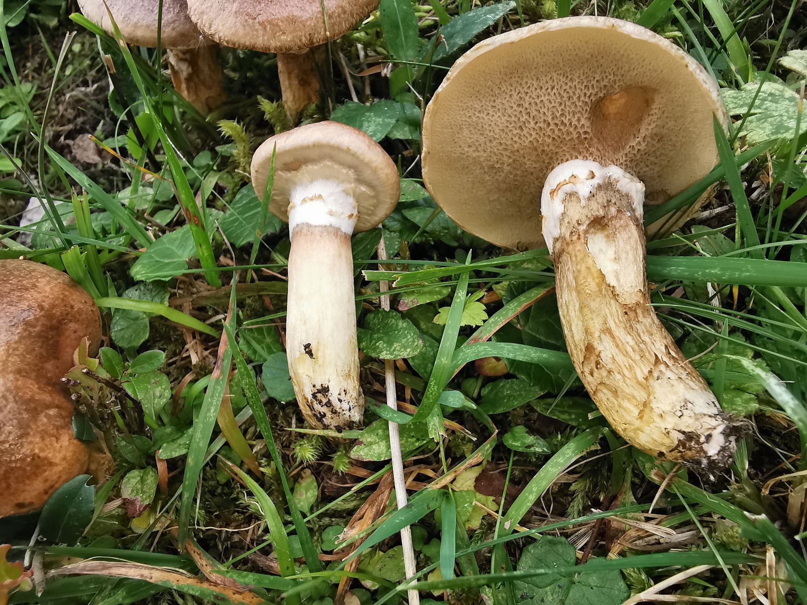 Als nächsten habe ich ein schönes Grüppchen Graue Lärchenröhrlinge (Suillus viscidus) gefunden. Etwas weiter habe ich dann ein weiteres Grüppchen gefunden (letztes Bild 5a). Bei der zweiten Gruppe kam mir die Hutfarbe aber etwas rotbräunlicher und die Stielfarbe etwas gelblich vor. Könnte das die Varietät brunneus sein?