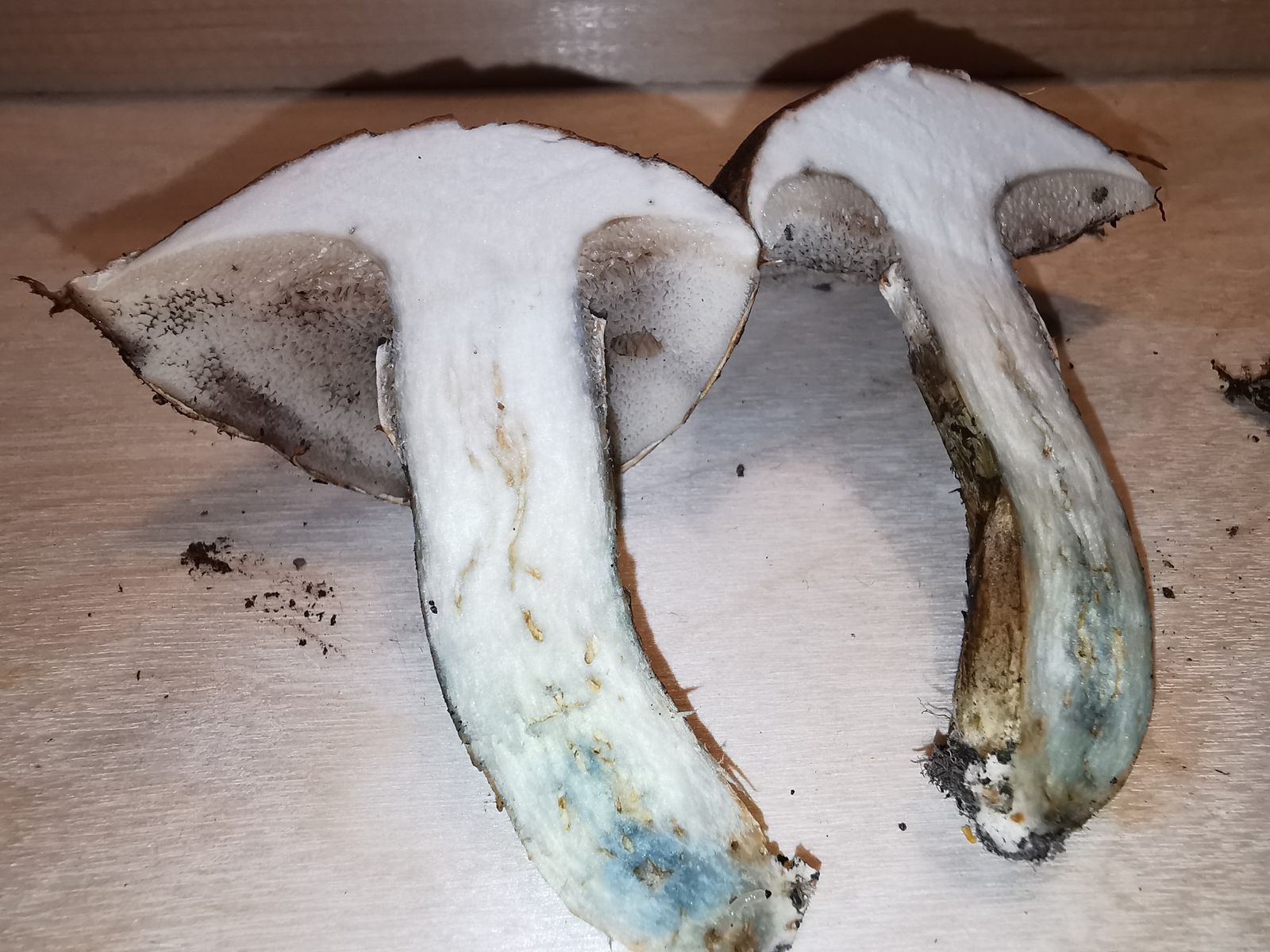 Auch der nächste Fund hat mich gefreut, da ich diesen bisher auch noch nicht gefunden habe. Vor allem nach dem ich den Pilz auseinandergeschnitten hatte, konnte ich einen starken Geruch nach nassem Mehl (oder auch etwas gurkig) wahrnehmen. Die Lamellen waren leicht verschiebbar. Ich denke hier spricht alles für den Mehlräsling (Clitopilus prunulus). Da Verwechslungen mit einigen sehr giftigen Trichterlingen gefährlich sein könnten, würde ich mich freuen, wenn ihr mir hier vielleicht noch ein paar Tipps geben könntet. Sind die Lamellen bei den giftigen Trichterlingen auch so leicht verschiebbar? Beim Feldtrichterling (Clitocybe dealbata) wird auf Pilze 123 der Geruch auch als leicht mehlartig (https://www.123pilzsuche.de/da…ails/Feldtrichterling.htm) beschrieben, kann dazu jemand etwas sagen? Oder ist man bei einem starken Mehlgeruch auf der sicheren Seite?