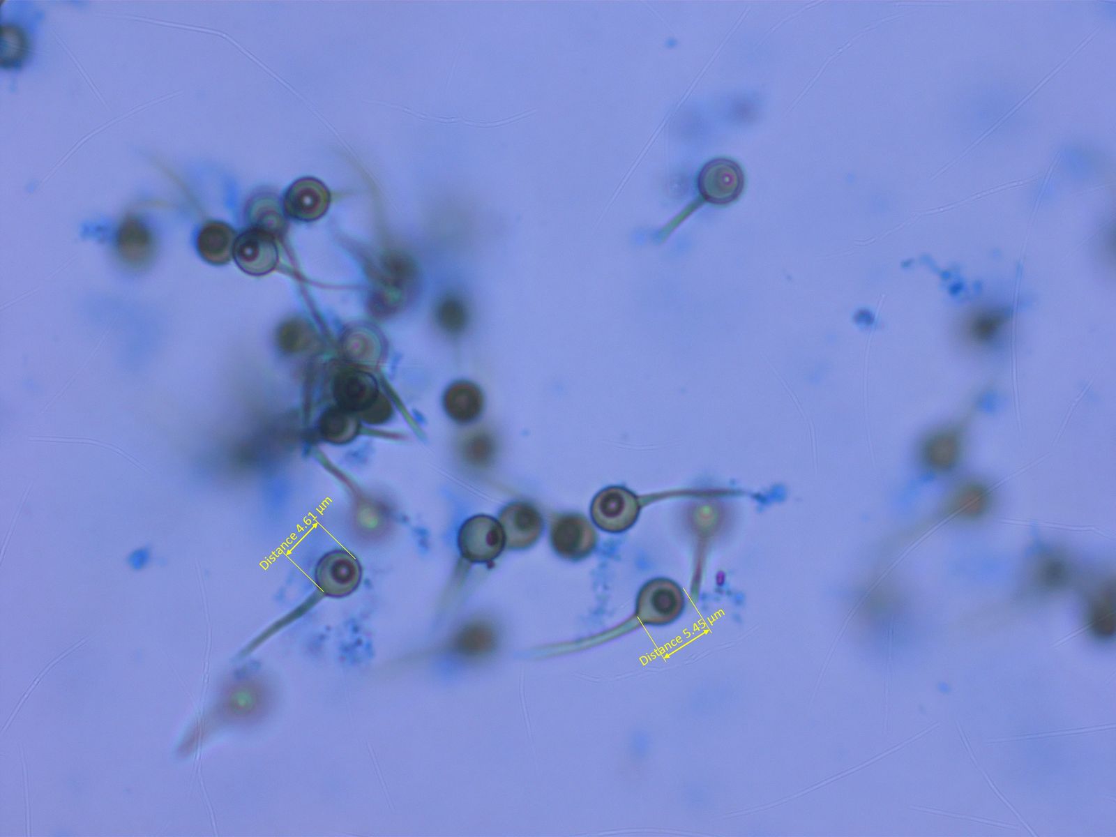 Sporen mit langem Pedicell, sehr fein warzig, was man auf dem Bild kaum sieht.