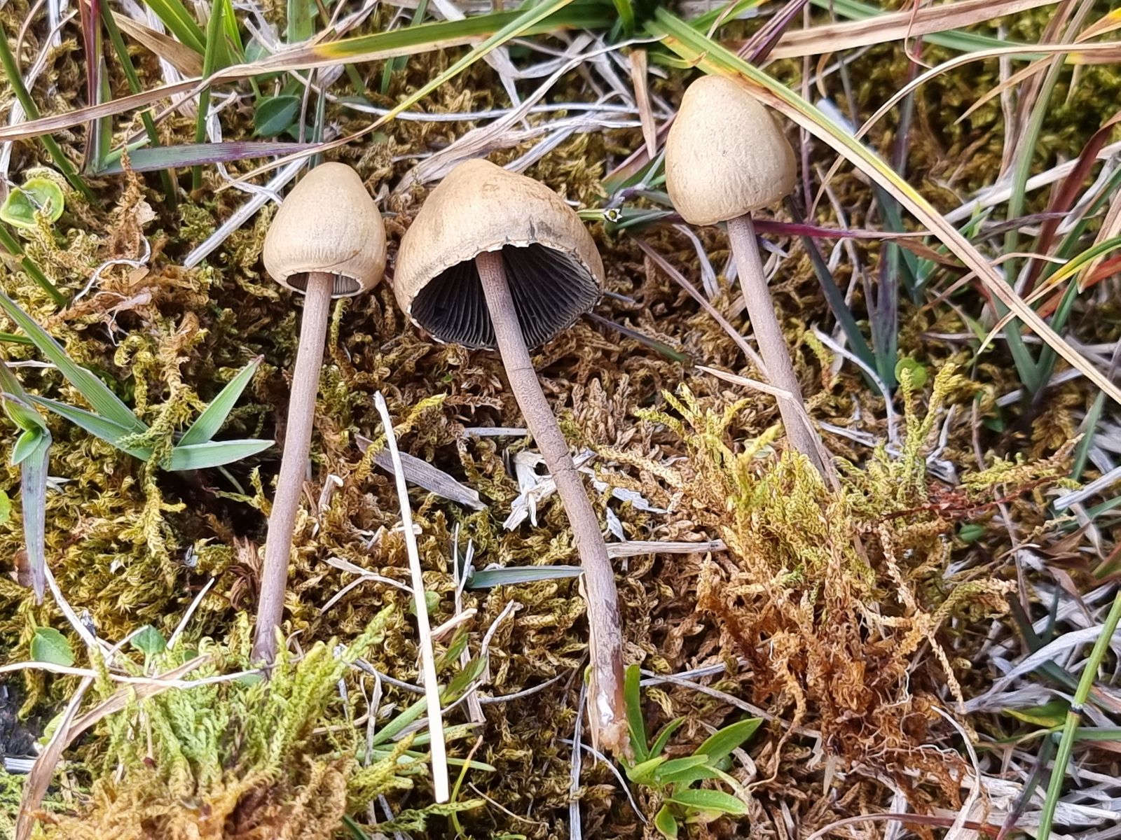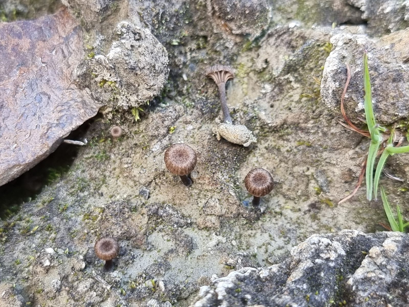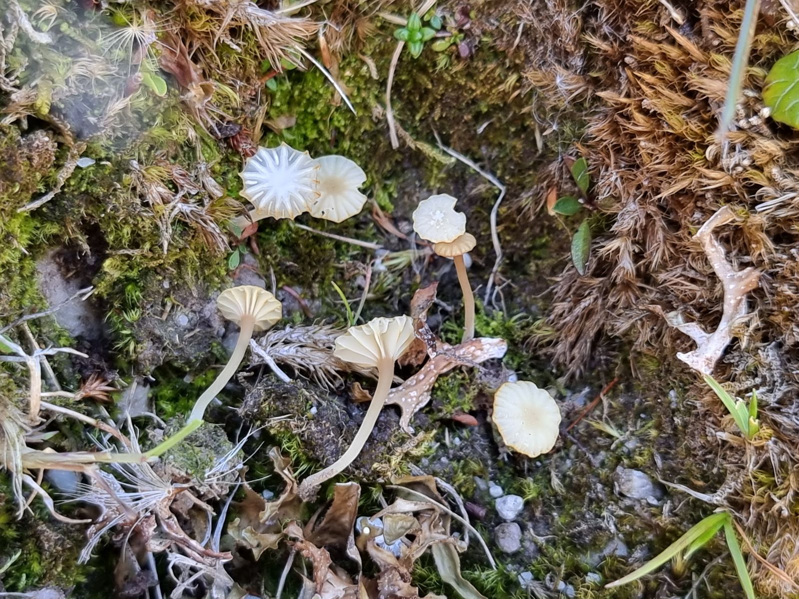 Hier komme ich nach Gröger auf Arrhenia onisca. Mich stört aber diese grobe Riefung der Hüte, nach Ludwig etc. sollte die viel feiner sein.