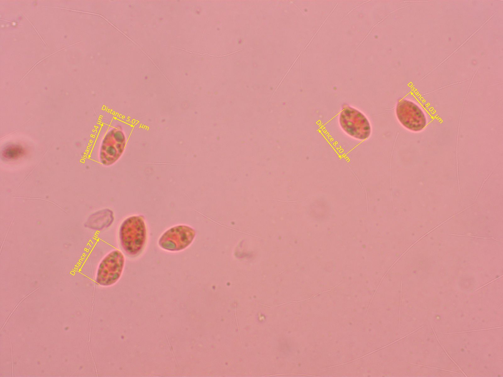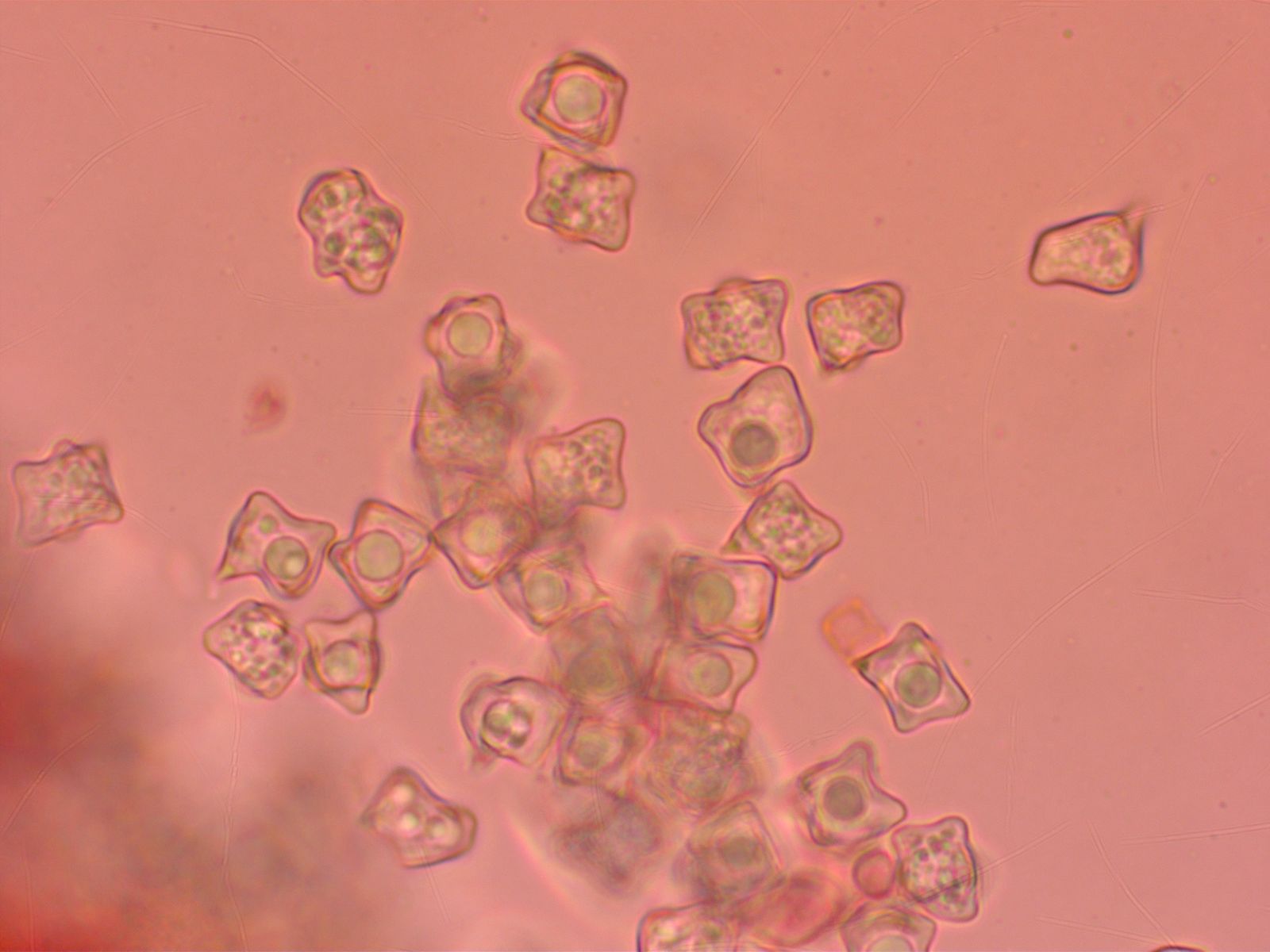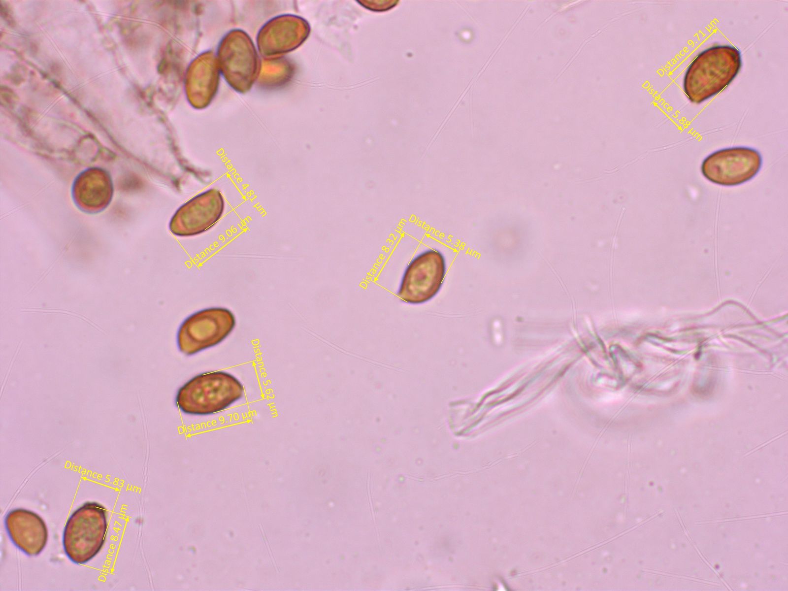 Die Sporen helfen nicht wirklich weiter. Basidien 4-sporig.