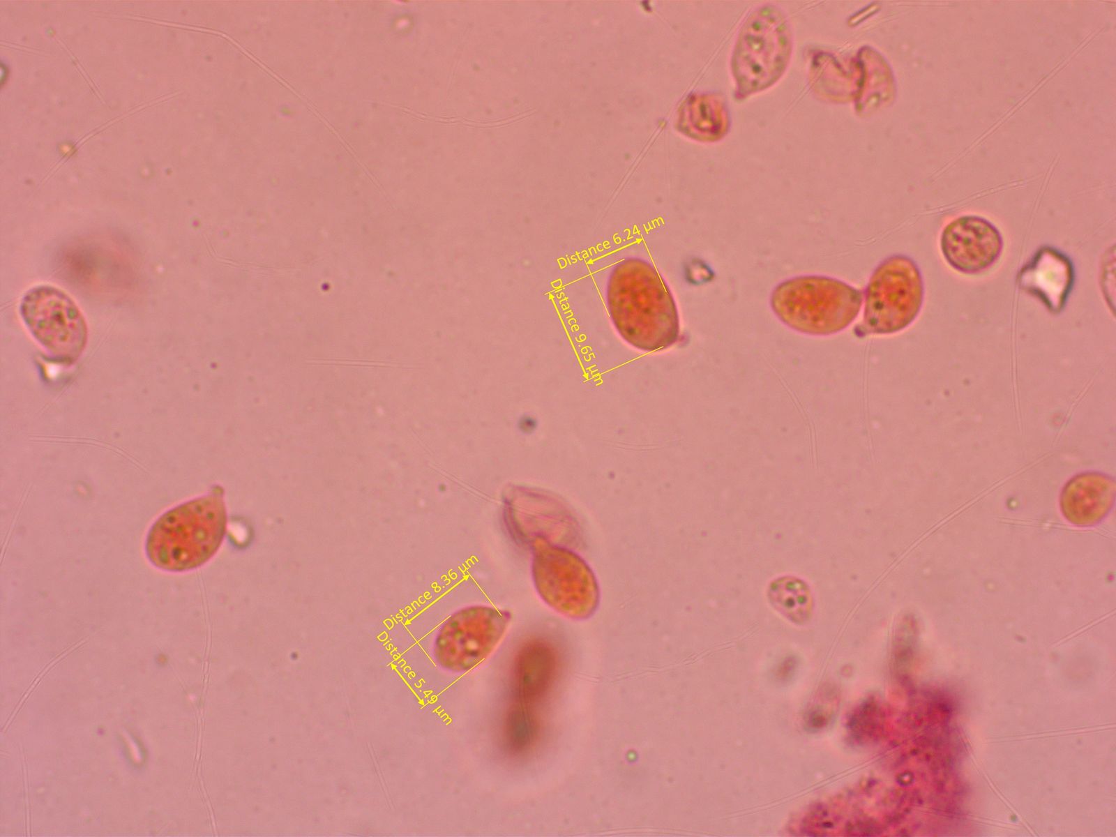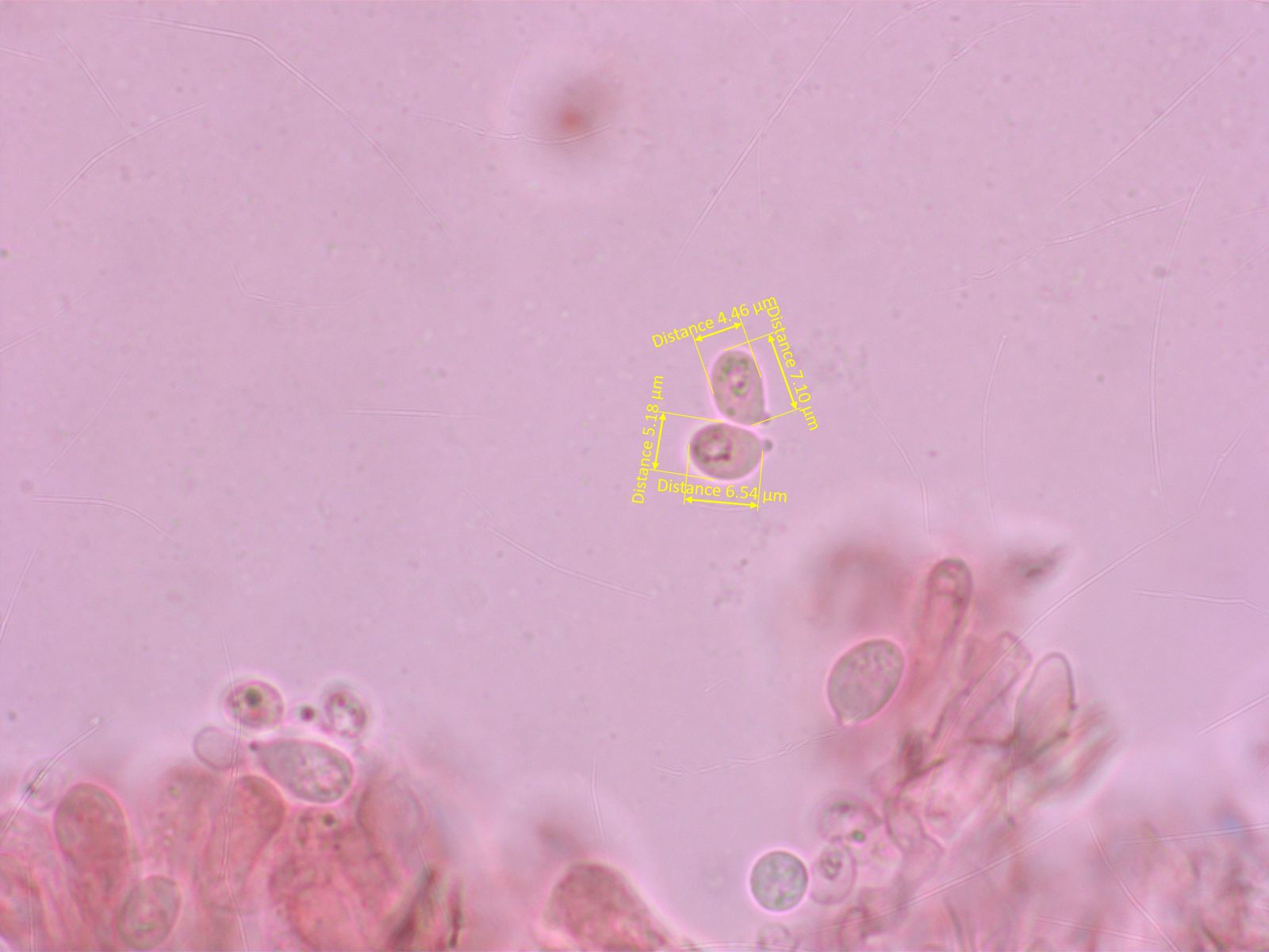 Basidien rein 1- oder 2-sporig, ich konnte trotz intensiver Suche keine 4-sporige Basidie finden.