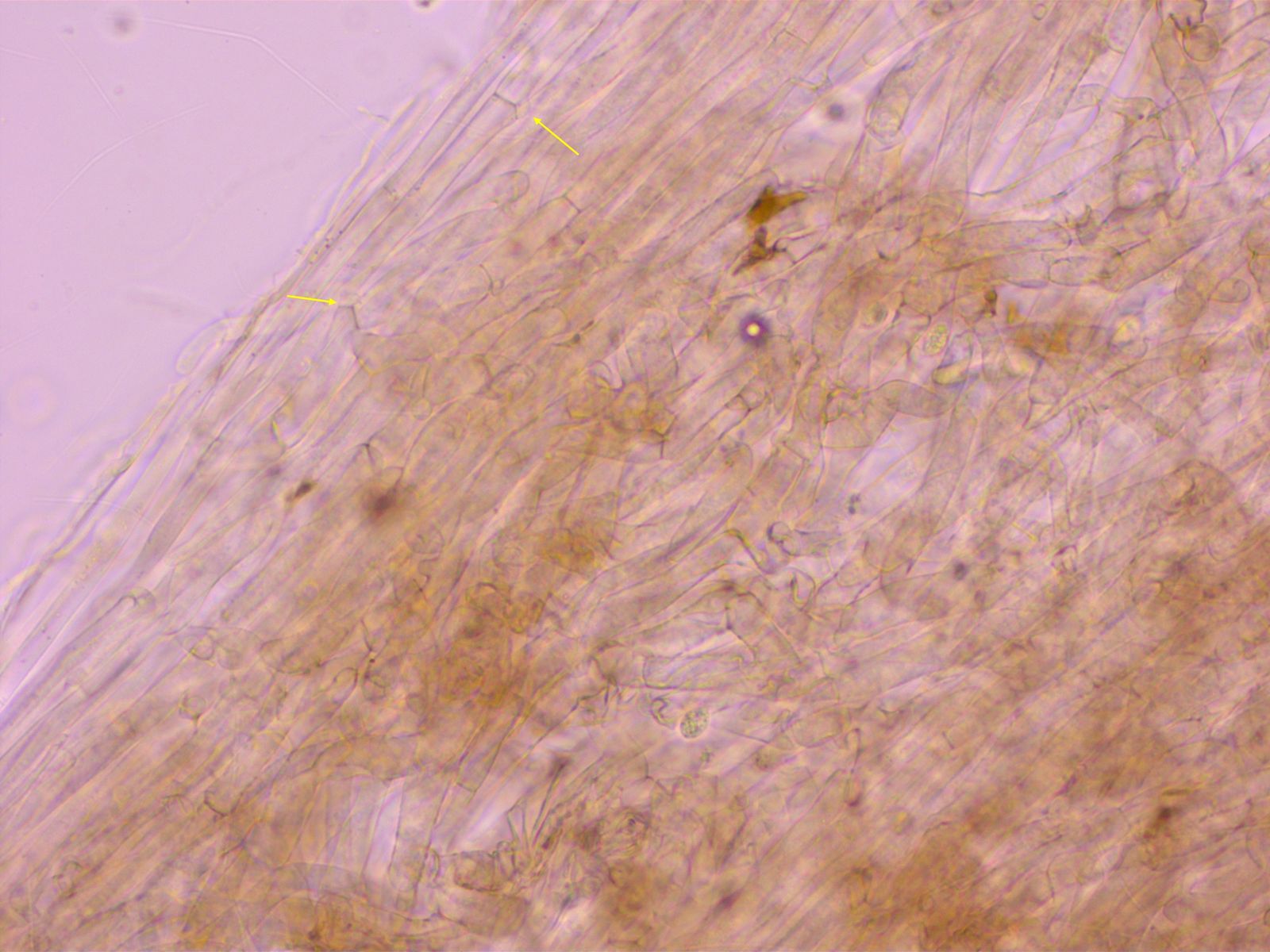 HDS aus glatten, teils etwas aufsteigenden Hyphen. Zystiden gab es nirgends.