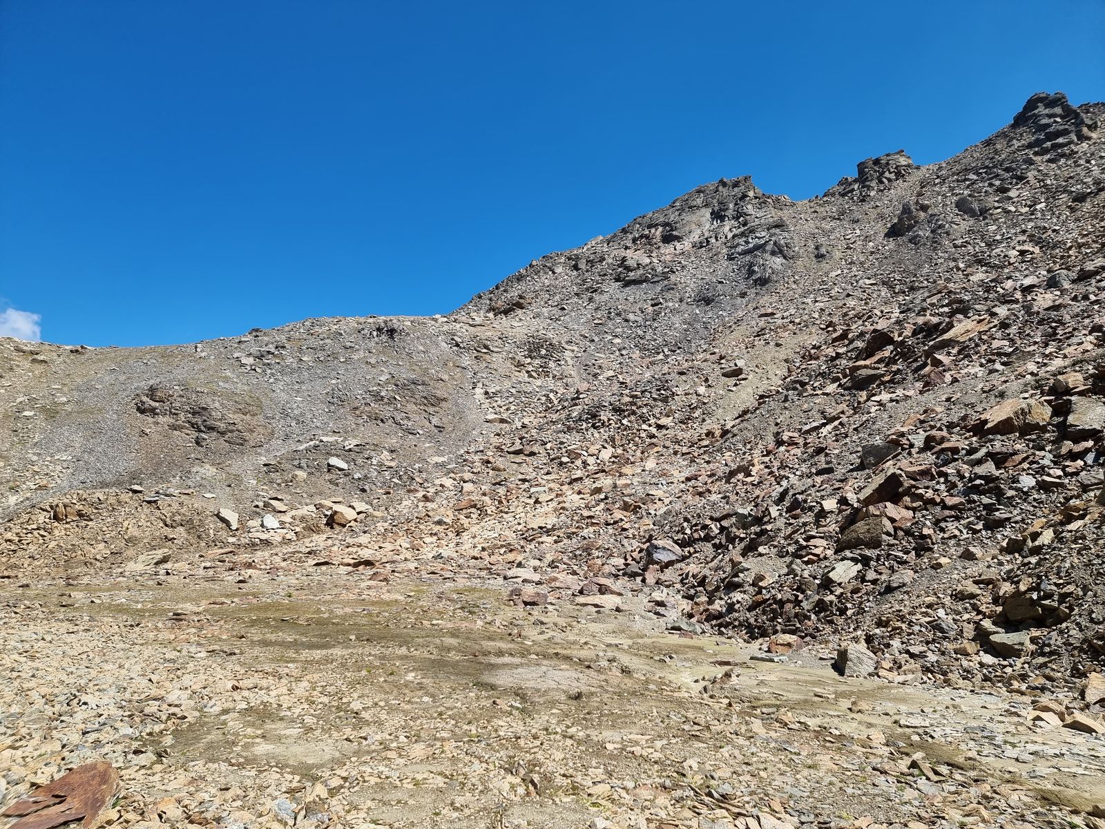 Das hier ist das trostlose Habitat dieses Pilzes: In einem ausgetrockneten See auf 2950m, direkt unter dem angepeilten Gipfel.