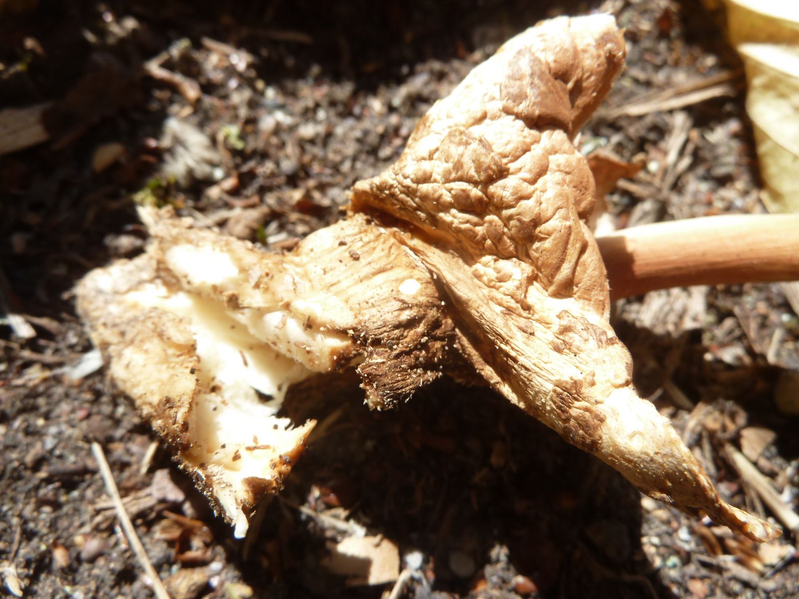 Angesichts der Dürre ist man froh, überhaupt einen Pilz zu finden. Von daher habe ich mich über gleich zwei Exemplare gefreut, auch wenn sie schon deutliche Trockenschäden aufweisen. Normalerweise würde ich sowas nicht ins Forum stellen, aber wir haben ja keine Normalbedingungen.