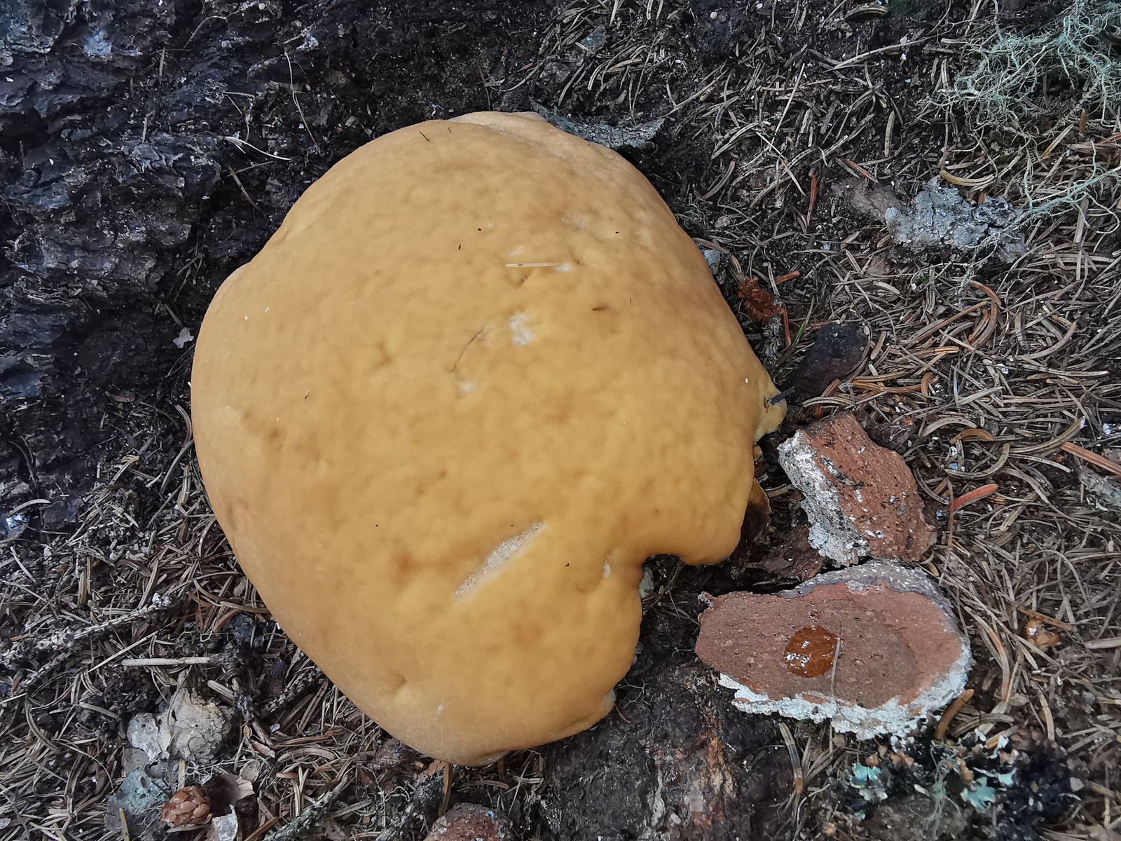 Also vermutlich doch ziemlich langweilig. ^^ Habe letzte Woche schon zwei Climacocystis borealis gefunden, aber die wuchsen jeweils an toten Baumstümpfen, waren nie so gelb und die Oberfläche fühlte sich filzig an. Bei diesem Exemplar fühlte sich die Oberfläche eigentlich ziemlich glatt an und es wuchs an der Wurzel einer quicklebendigen Fichte. Ist die Oberfläche von jungen Climacocystis borealis eigentlich glatt?