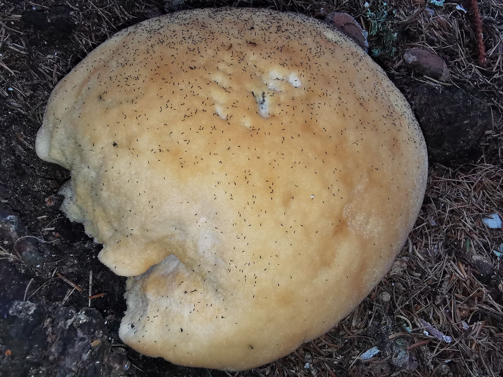 Gestern habe ich einen Fund am Fusse einer Fichte gemacht. An den Wurzeln der Fichte wächst ein vermutlich gelber Porling. Da ich mich mit Baumpilzen überhaupt nicht auskenne, hoffe ich, dass ihr mir weiterhelfen könnt. Der Pilz ist hart und relativ schwer mit dem Messer zu durchschneiden. Das Fleisch ist weiss und den Geruch empfinde ich als etwas harzig.