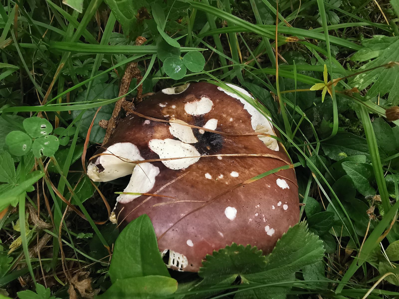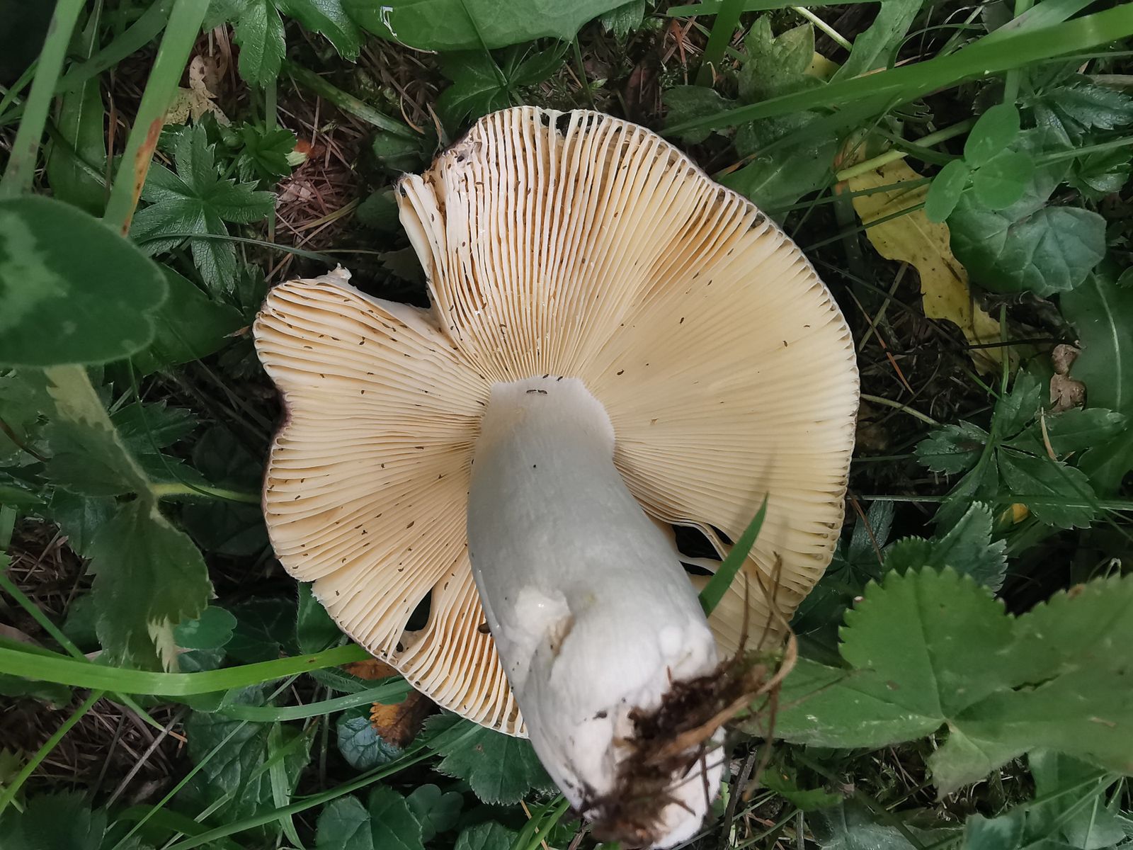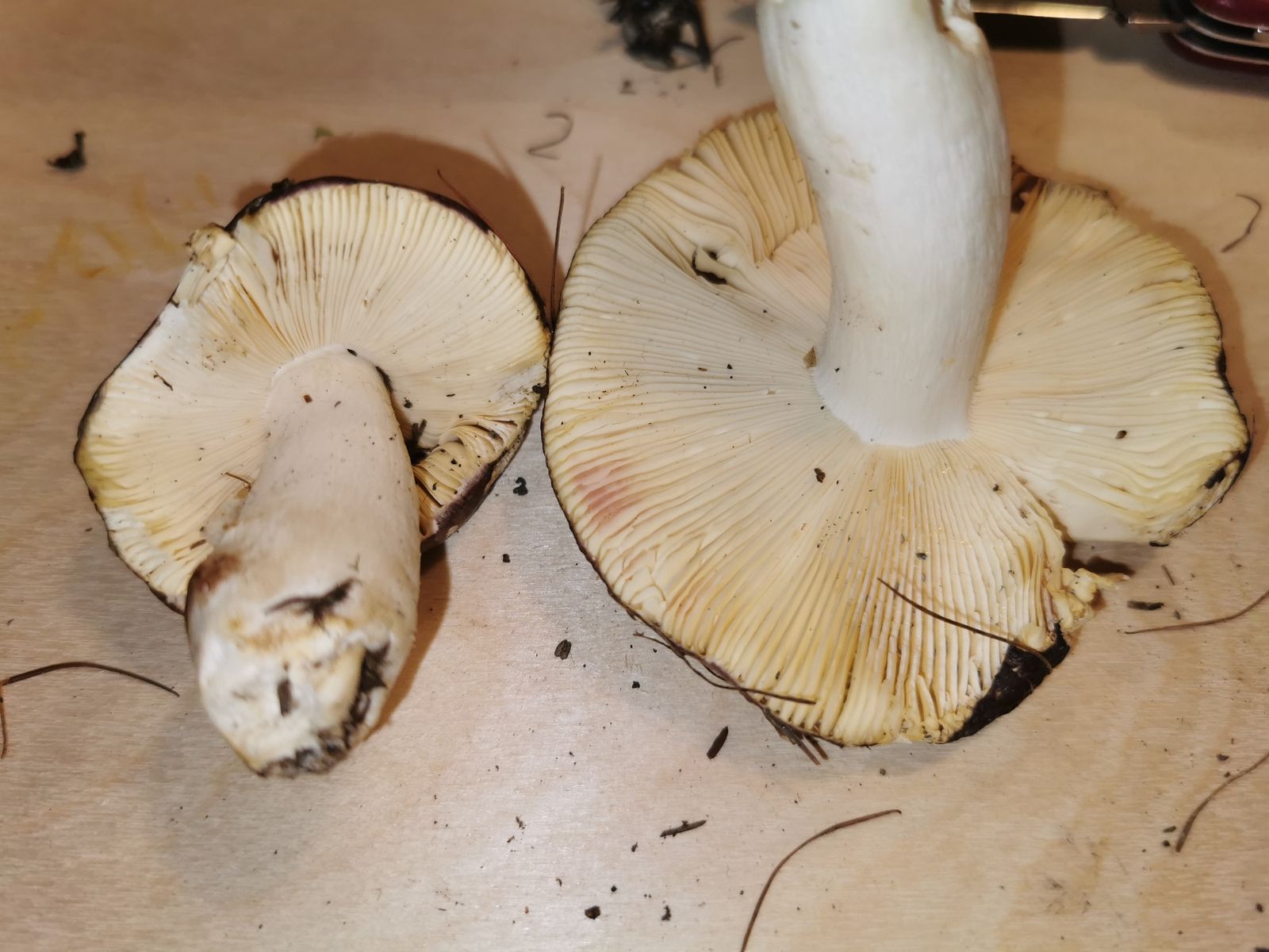 Gestern habe ich nochmal zwei Täublinge mit nach Hause genommen. Da einer meiner Meinung nach wieder ein Weinroter Graustieltäubling (Russula vinosa) ist, stelle ich hier nur den anderen vor. Dieses Mal konnte ich zwei Stück finden und habe beide mitgenommen. Für Tipps, um was es sich handeln könnte, wäre ich euch dankbar.