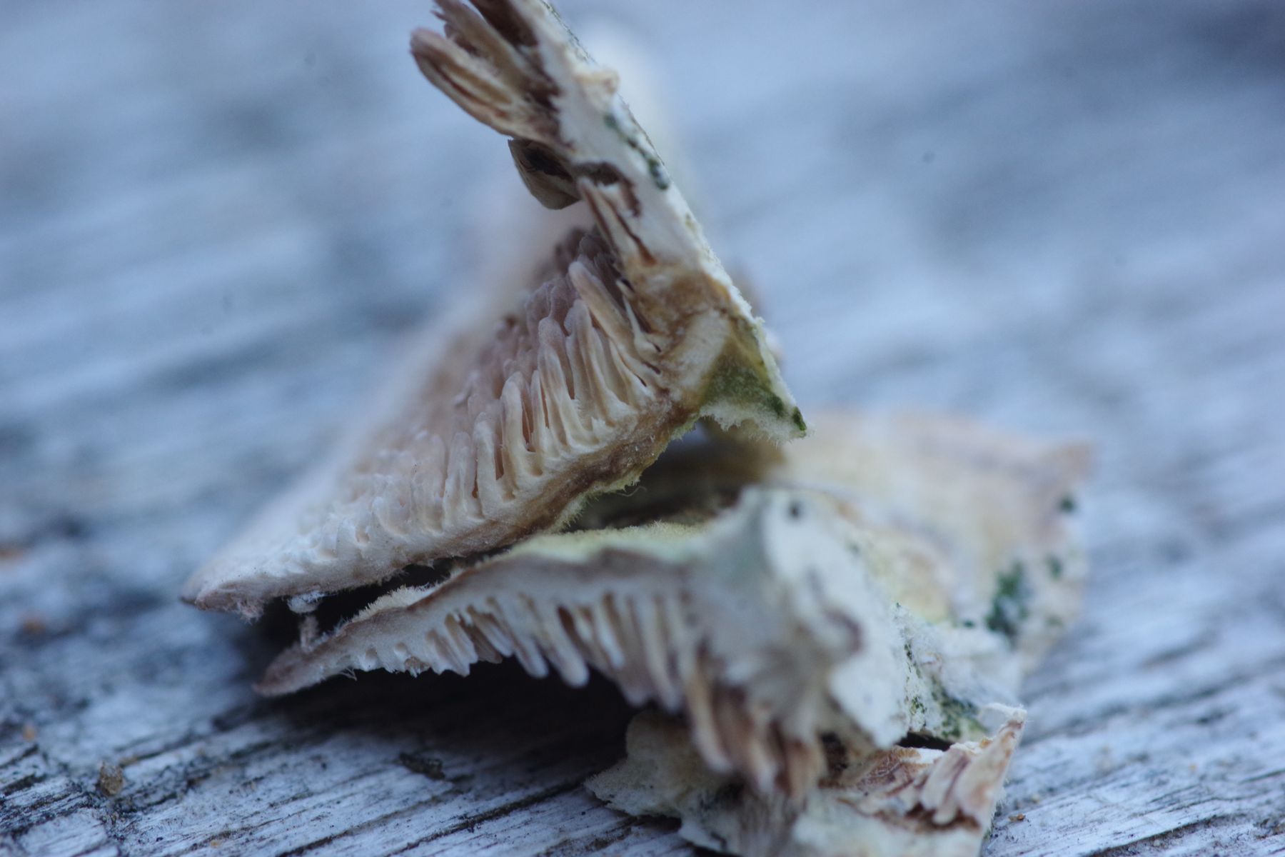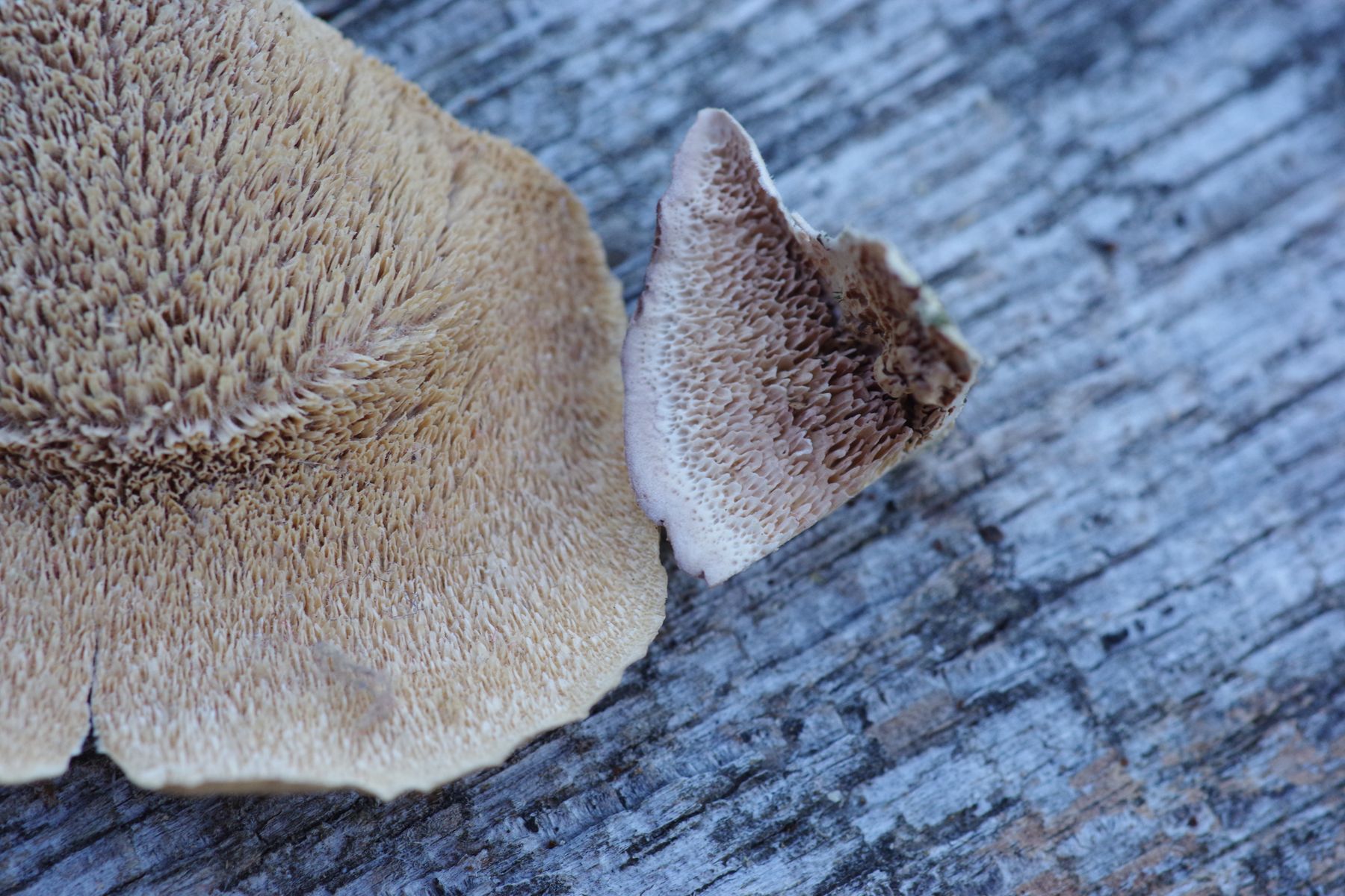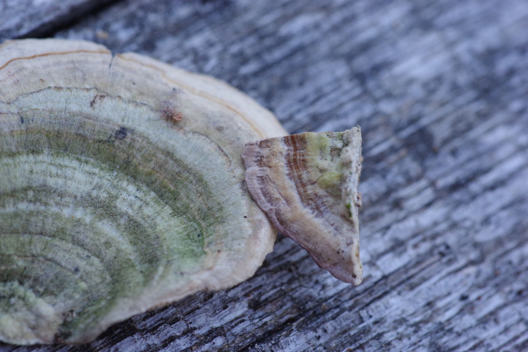 3) Antrodia oder so (am gleichen Haselast wo Dichomitis campestris haust(e) und Resupinatis trichotis), wie cih finde sehr fotogen