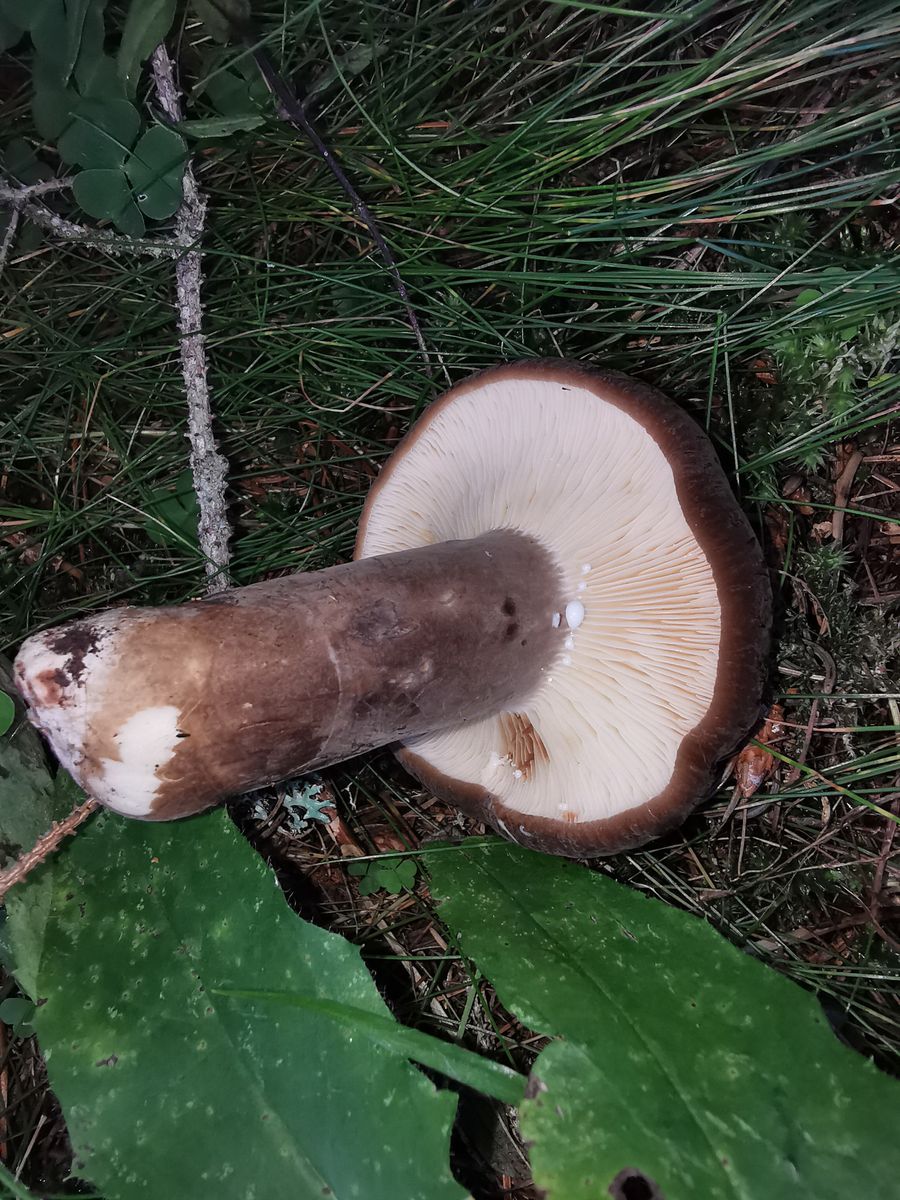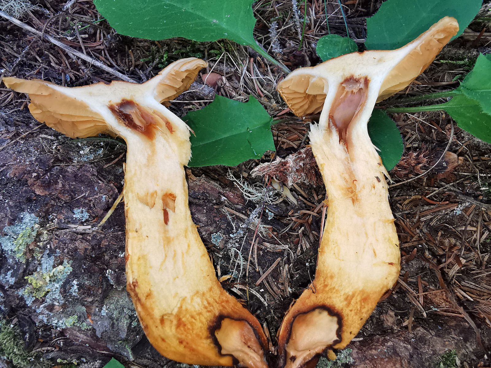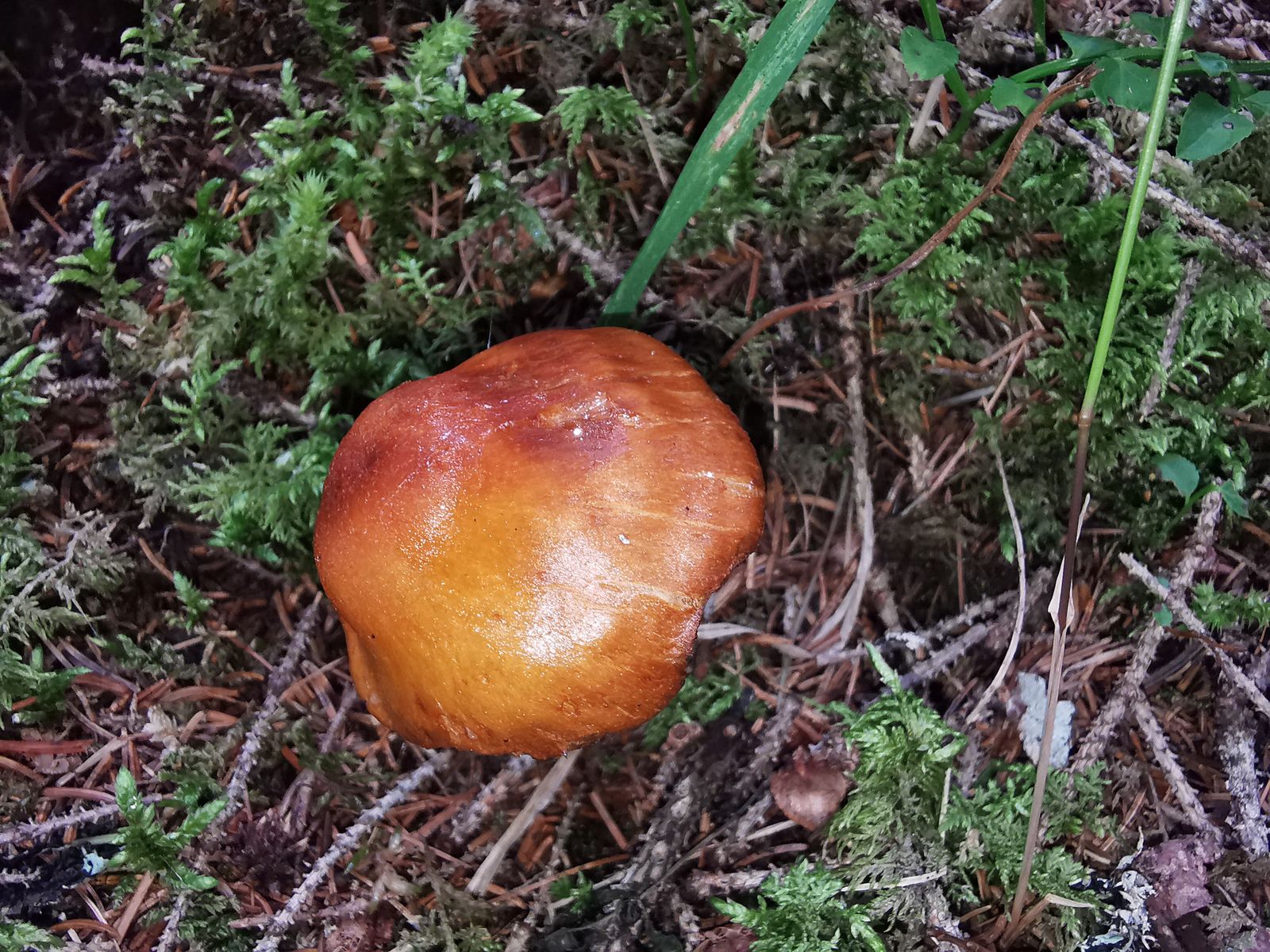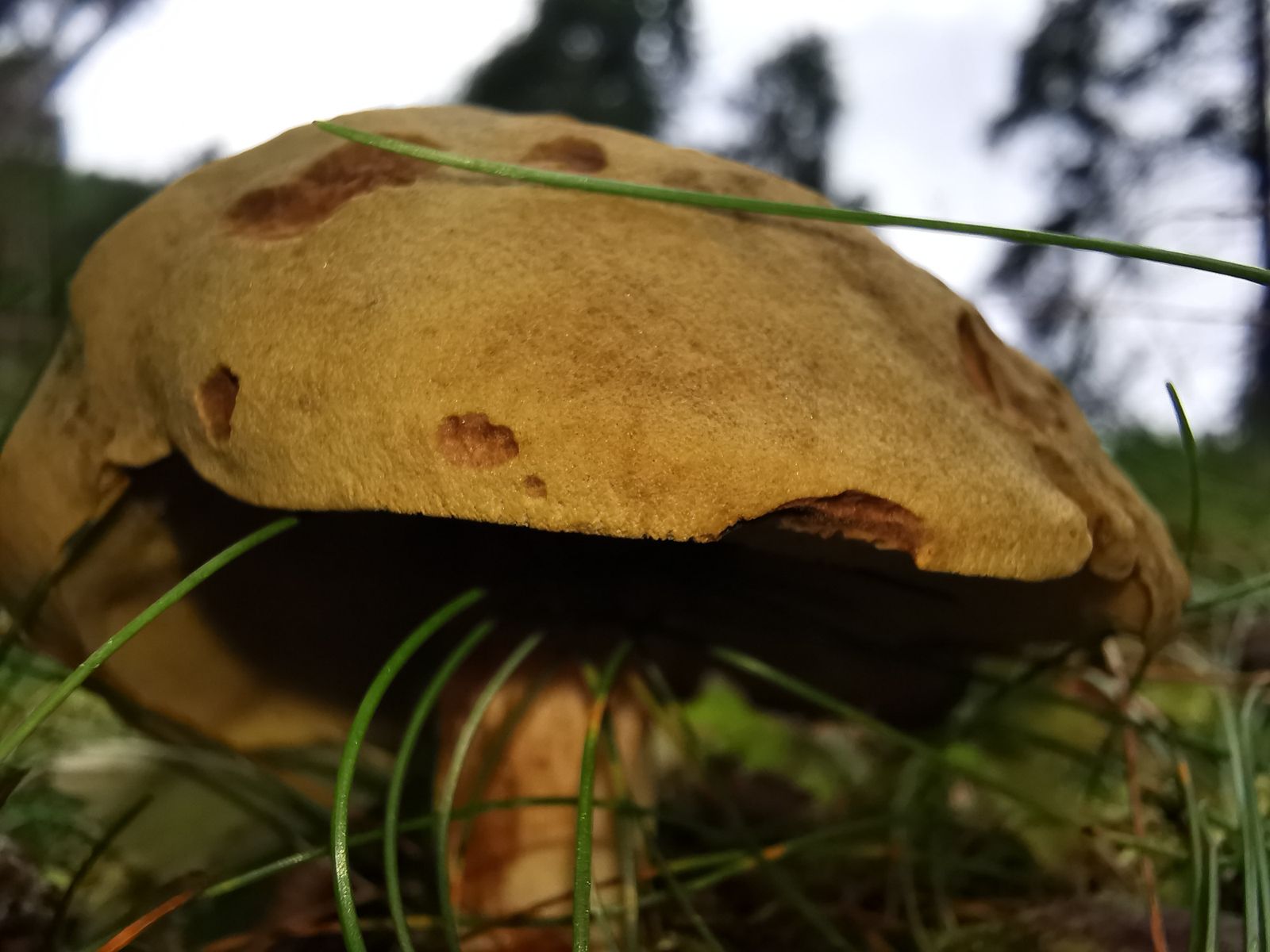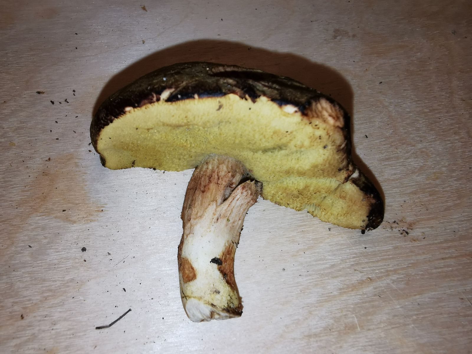 6. Brauner Filzröhrling - Xerocomus ferrugineus. Hier bin ich mir nicht ganz sicher, es könnte vielleicht auch eine Ziegenlippe - Xerocomus subtomentosus sein. Ich empfinde hier den Stiel als etwas undeutlich und tue mich oft noch etwas schwer damit, einzuschätzen, ob das jetzt ein feines Netz ist, oder nicht. Gefunden wurde der Pilz bei einer Fichte. Gerne höre ich eure Meinung dazu.