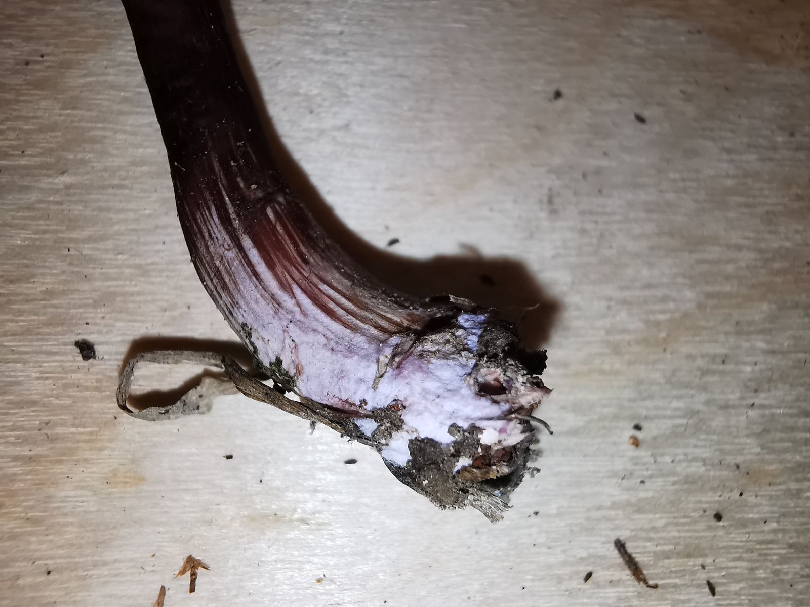7. Gemeiner Erdrittlerling - Tricholoma terreum. Korrektur von Clavaria: Vermutlich Brennendscharfer Ritterling - Tricholoma virgatum. Geruch neutral. Update: Geschmack sehr bitter. Das orange bei Bild 7c & 7d ist nur eine Verunreinigung und stammt nicht vom Pilz.