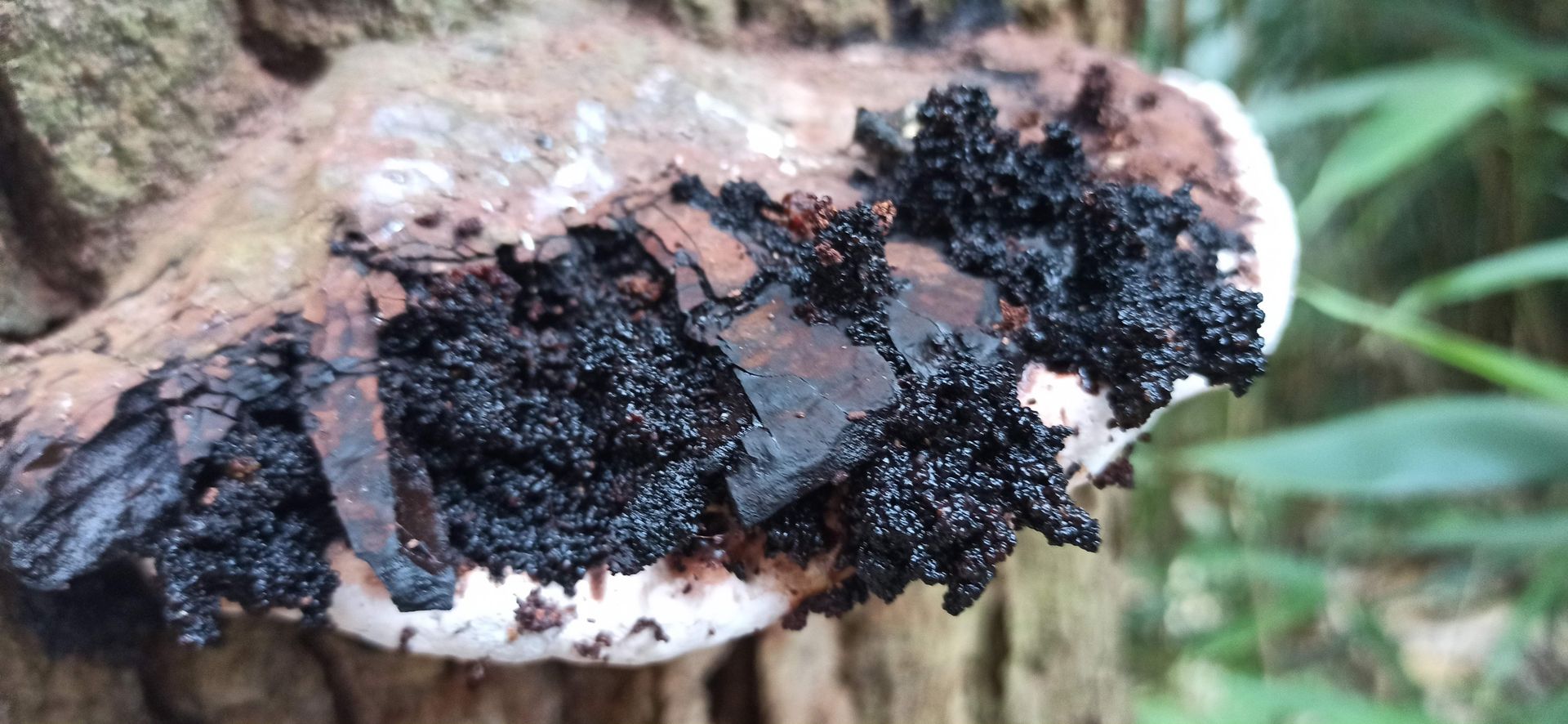 Was da passiert ist, ist mir völlig schleierhaft. Aber es sieht scheuslich aus, als würde schwarzer Brei aus dem fruchtkörper herausplatzen?