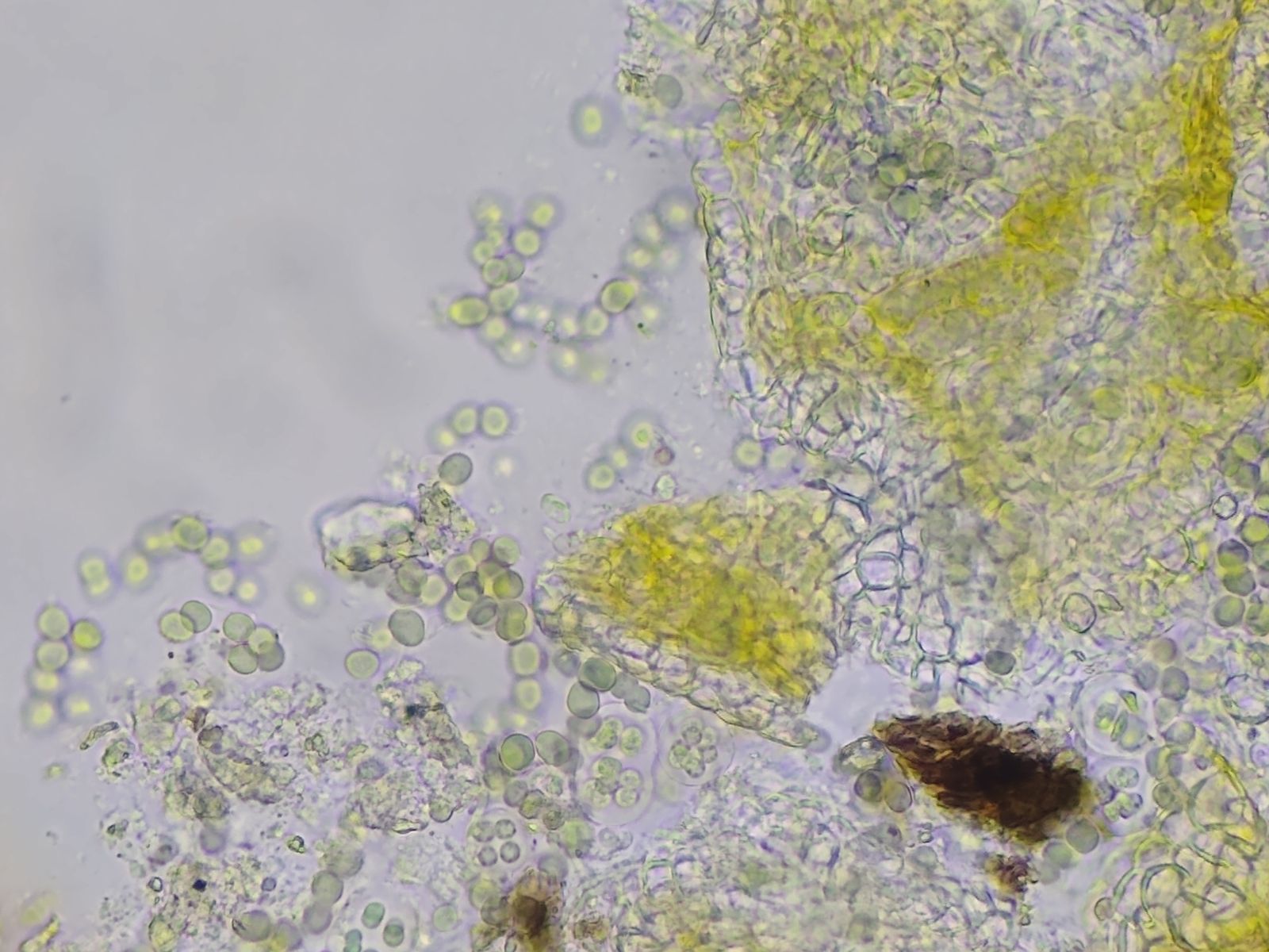 Unter dem Mikroskop zeigt sich, dass er keine Flechte ist. Aber was ist das: