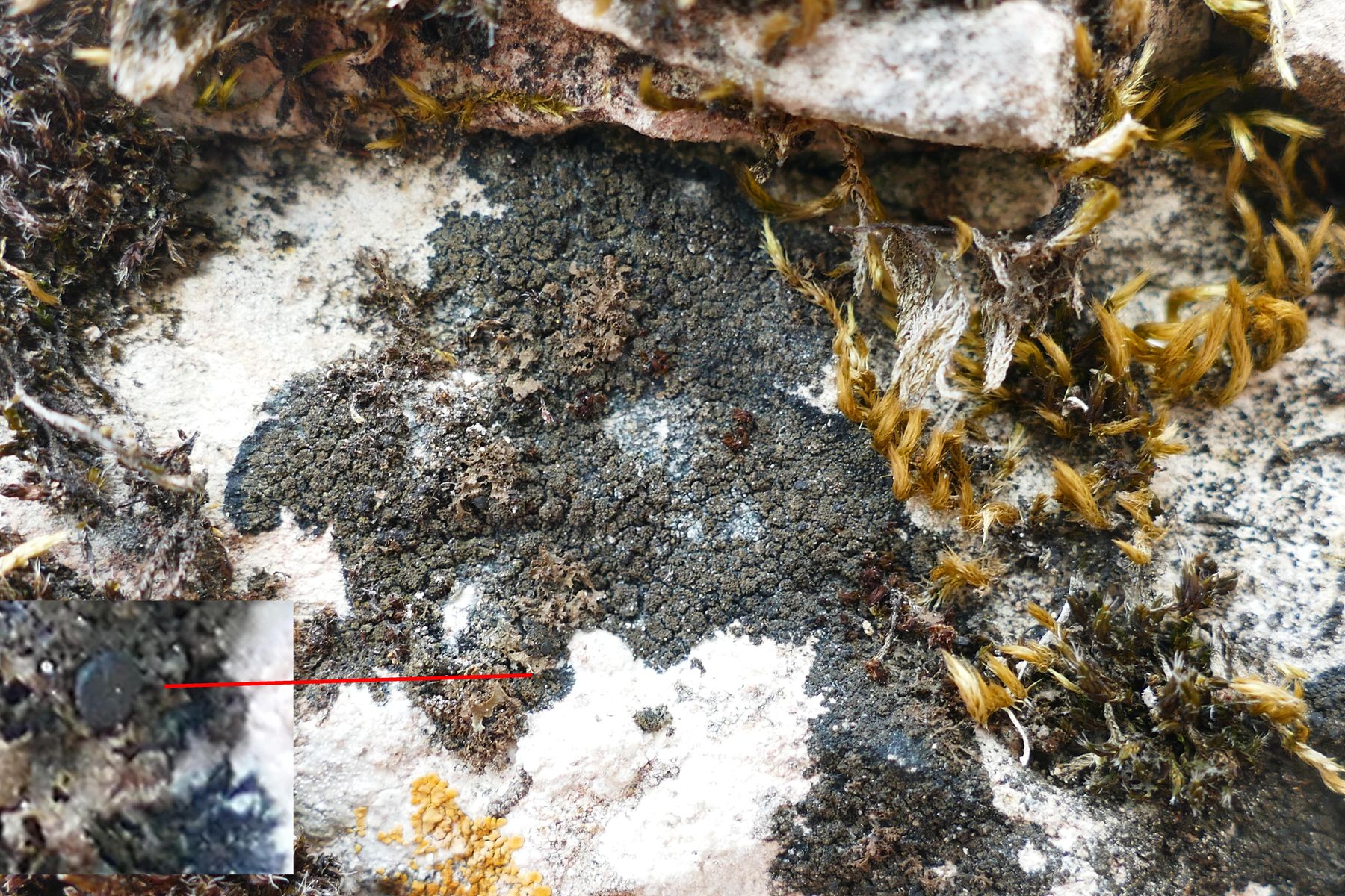 Bild 1 Flechte am Fundort: Schwarze Schuppenflechte - Placynthium nigrum