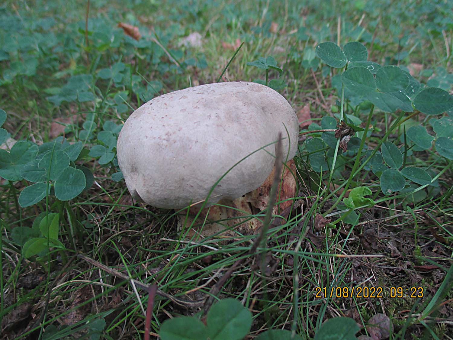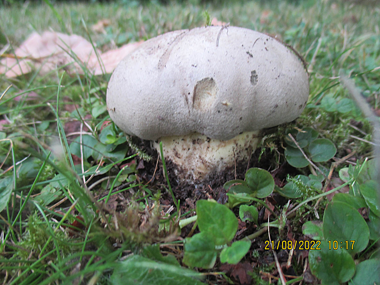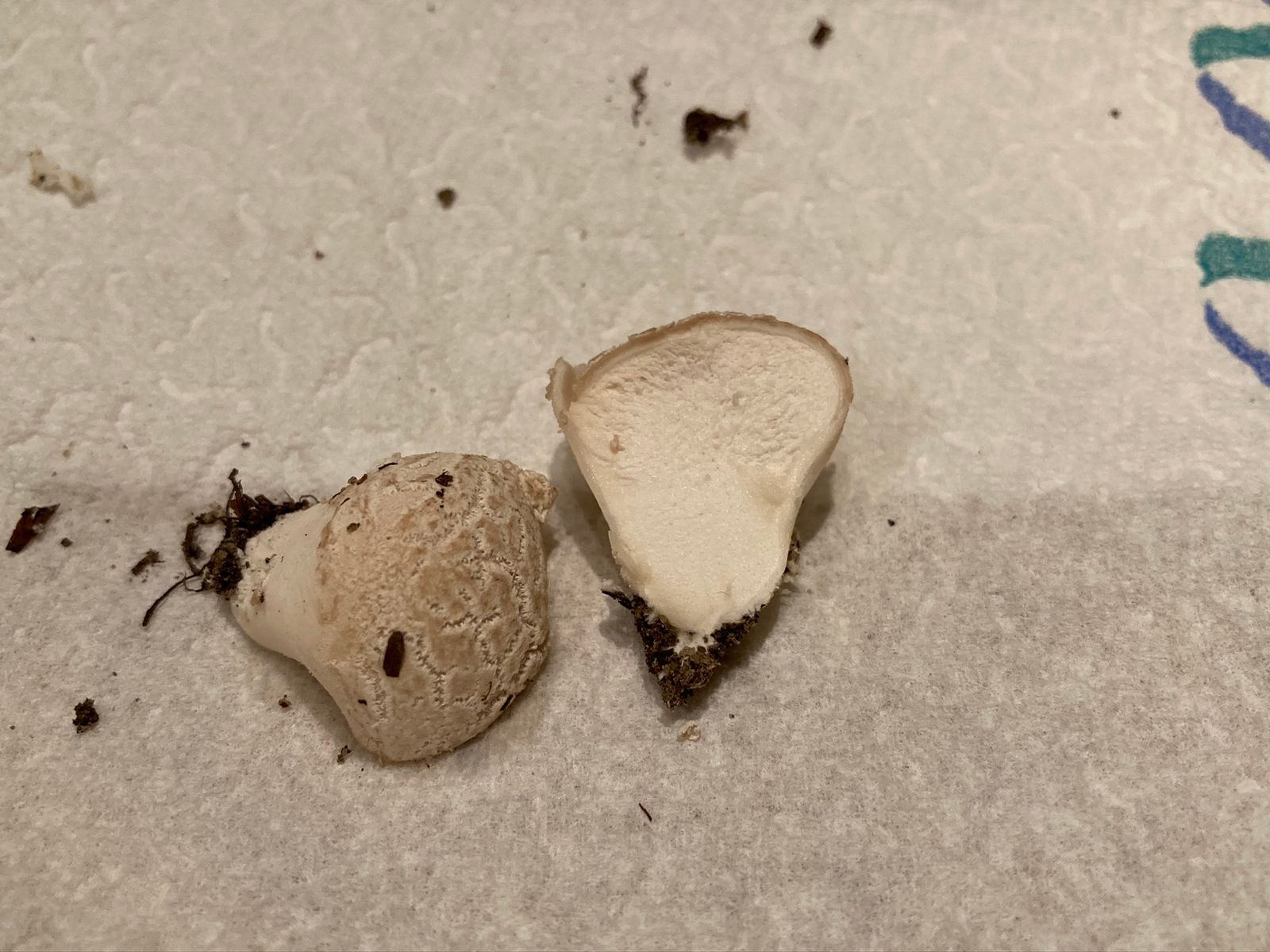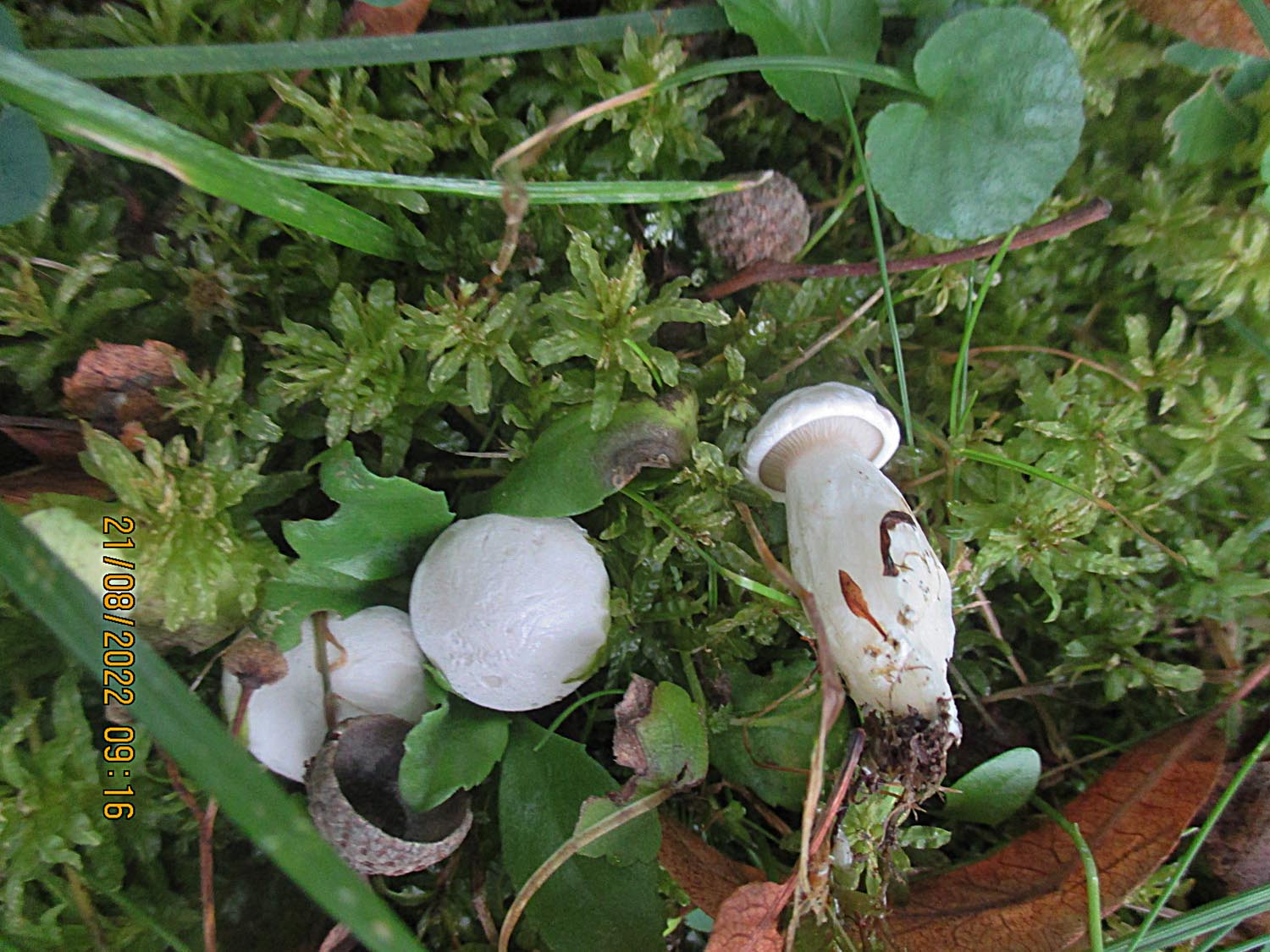 Dann stand ein Trupp von Bovisten herum denen ich keinen Namen geben kann. Für den Hasenbovist (Bovistella utriformis) sind die mir mit 3-5 cm zu klein und für den Bleigrauen Zwegbovist (Bovista plumbea) zu groß. Ich tendiere zum Hasenbovist.