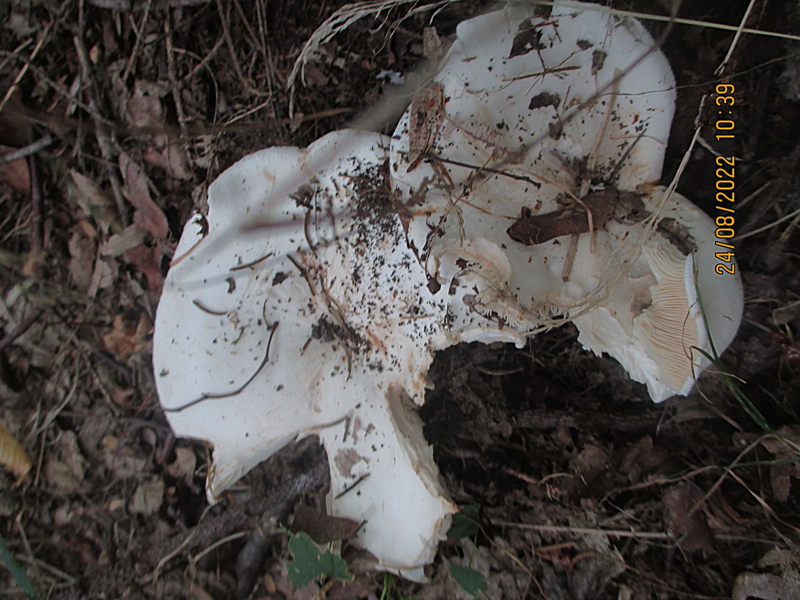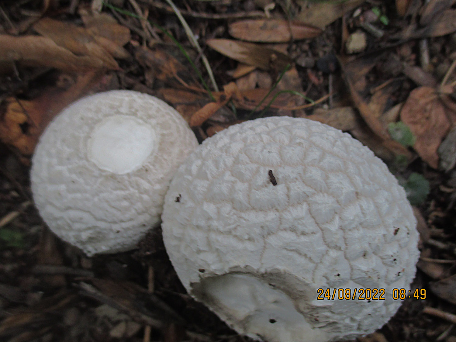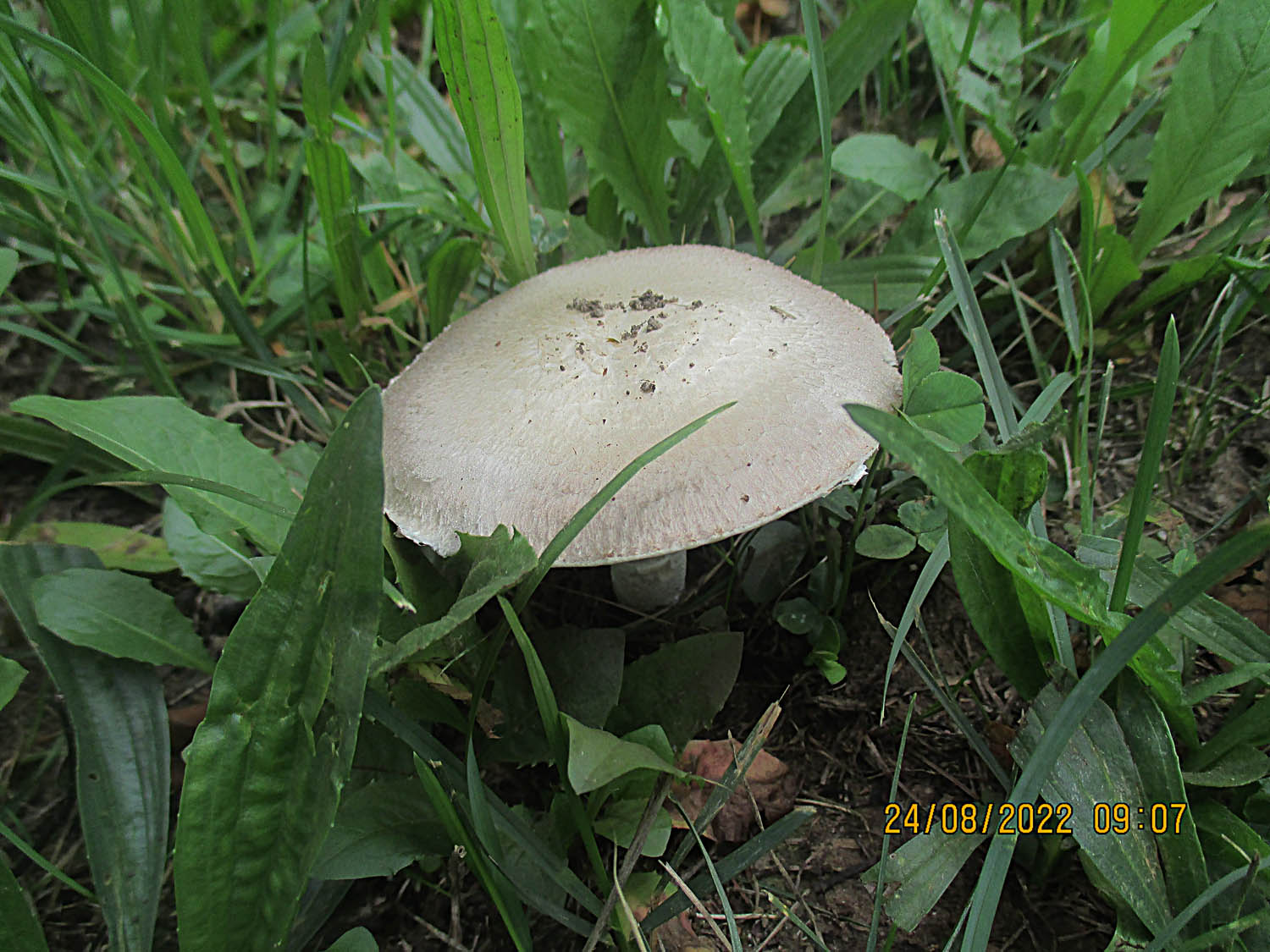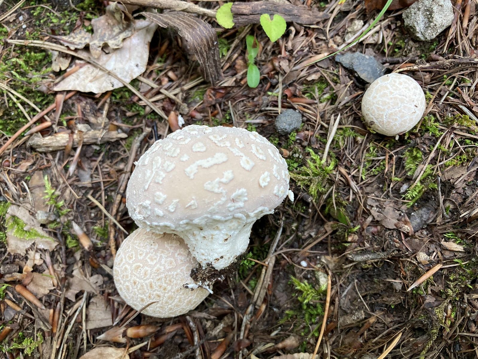 Dann stand ein Trupp von Bovisten herum denen ich keinen Namen geben kann. Für den Hasenbovist (Bovistella utriformis) sind die mir mit 3-5 cm zu klein und für den Bleigrauen Zwegbovist (Bovista plumbea) zu groß. Ich tendiere zum Hasenbovist.