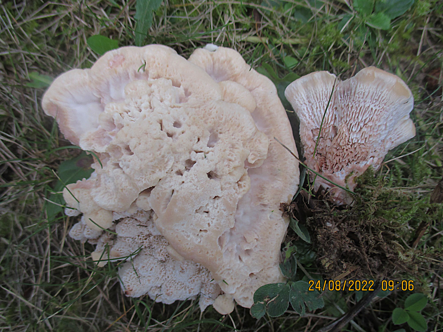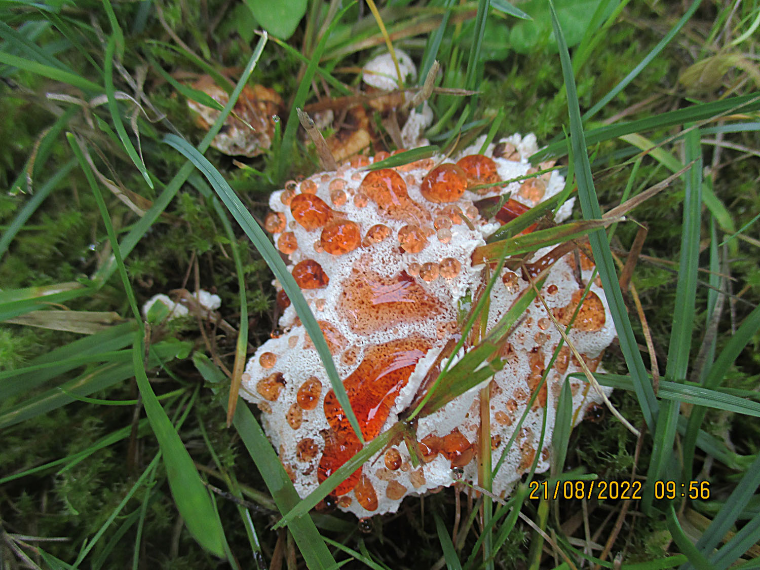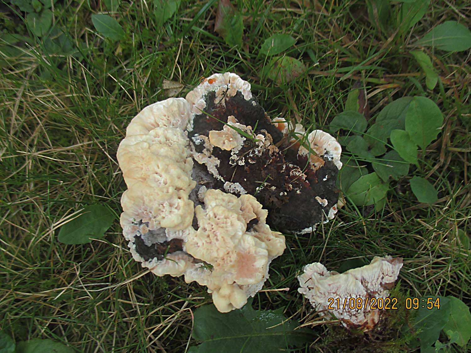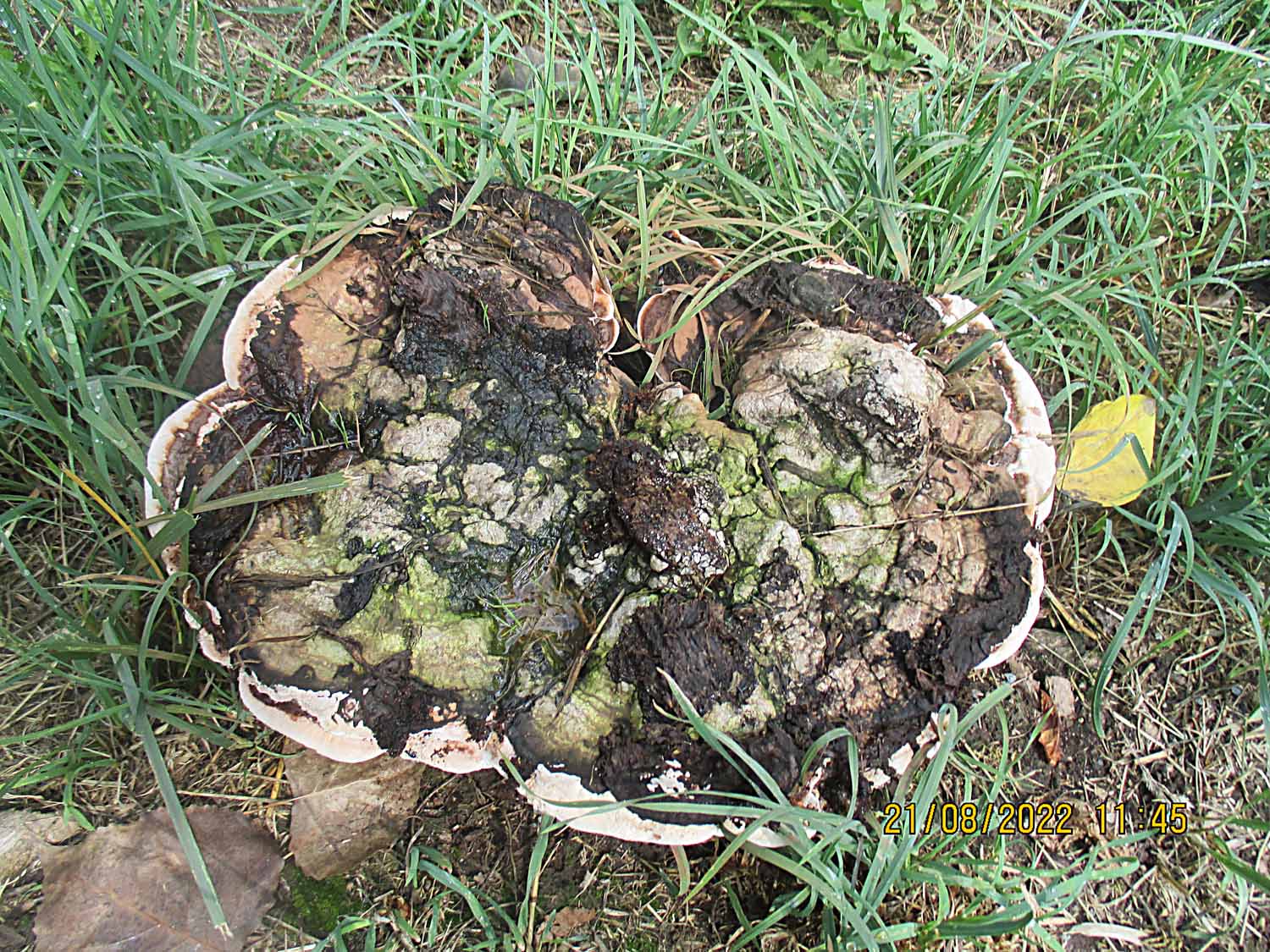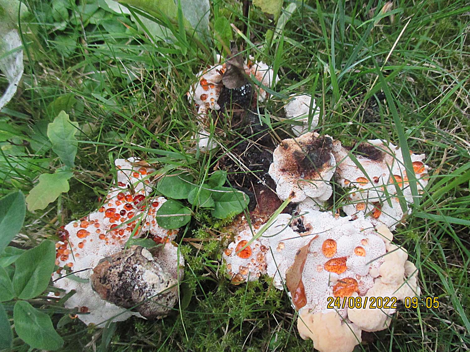 Dann kam ich zu meinem Fundort des Rötenden Saftwirrlings (Abortiporus biennis). Von denen waren viele in allen Altersstufen vorhanden.