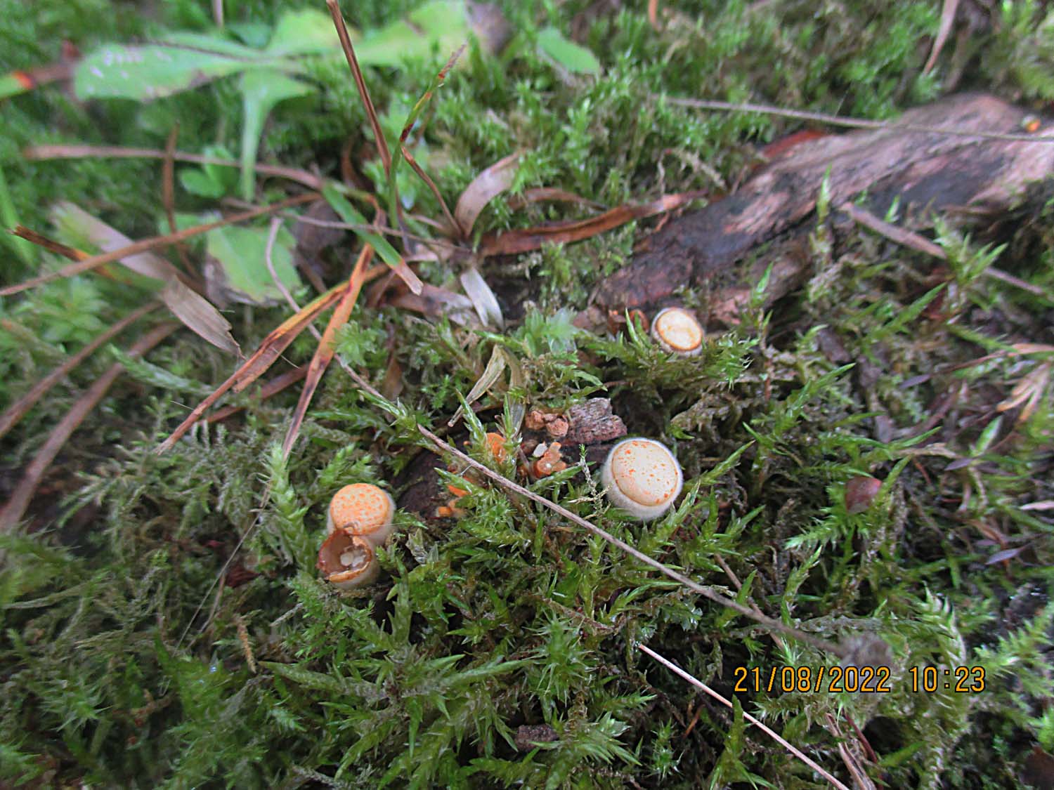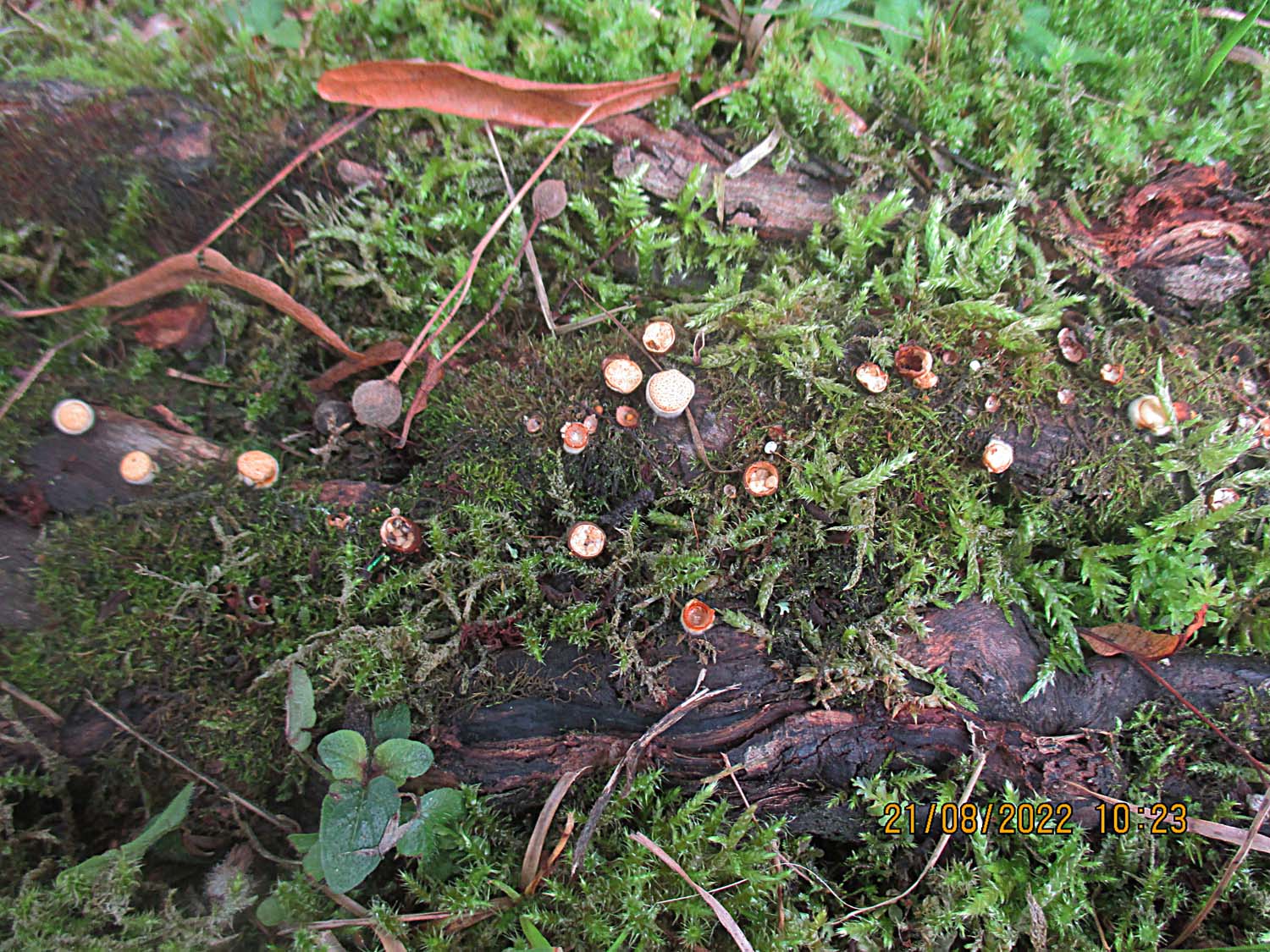 Dann entdeckte ich an einer alten Wurzel diese kleinen Gesellen, bei denen ich den Tiegelteuerling (Crucibulum laeve) vermute.