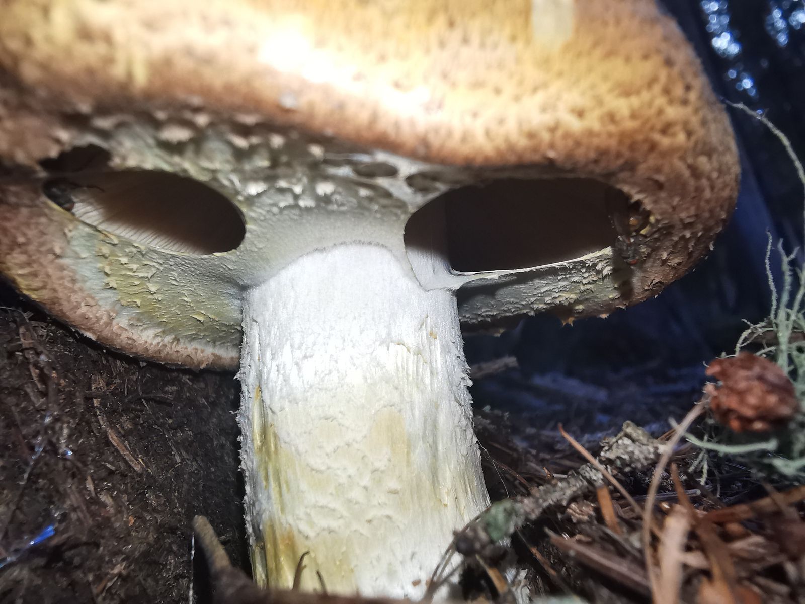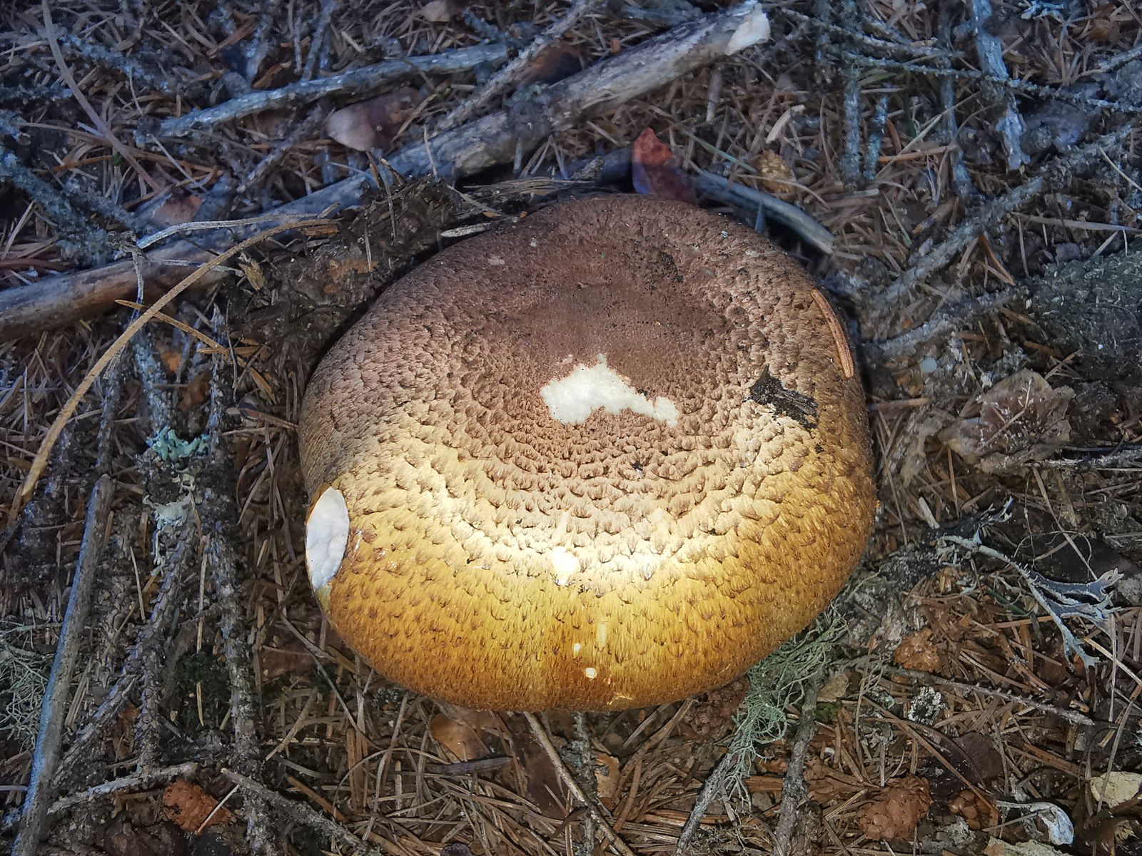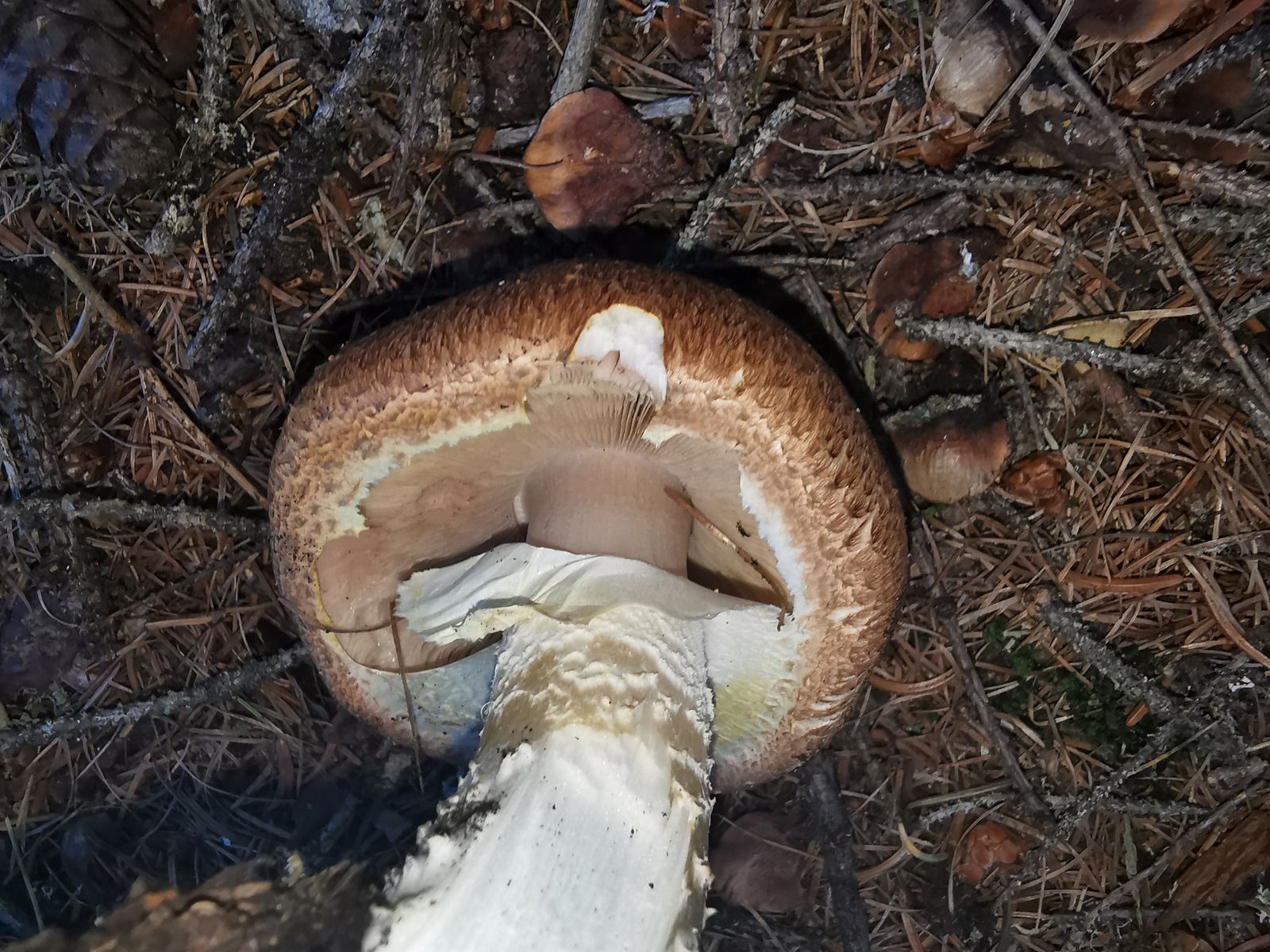 Der erste ist meiner Meinung nach der Riesenchampignon (Agaricus augustus). Auffällig finde ich seine spezielle Hutstruktur und wie bereits geschrieben seinen Duft nach Anis/Bittermandeln: