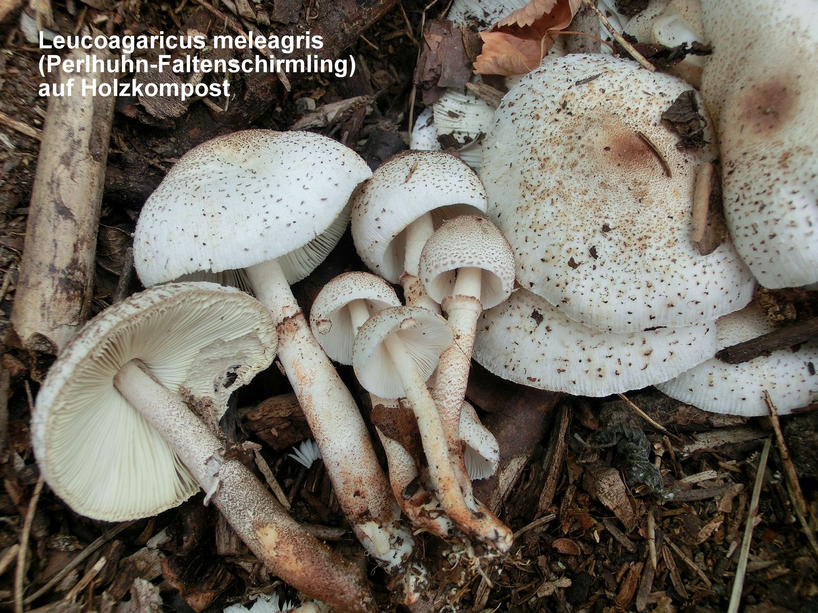 Zunächst dachte ich an L. badhamii, doch sind die Sporen zu groß und zu breit. Nach den Untersuchungen würde ich den Pilz als Leucoagaricus meleagris ansprechen.