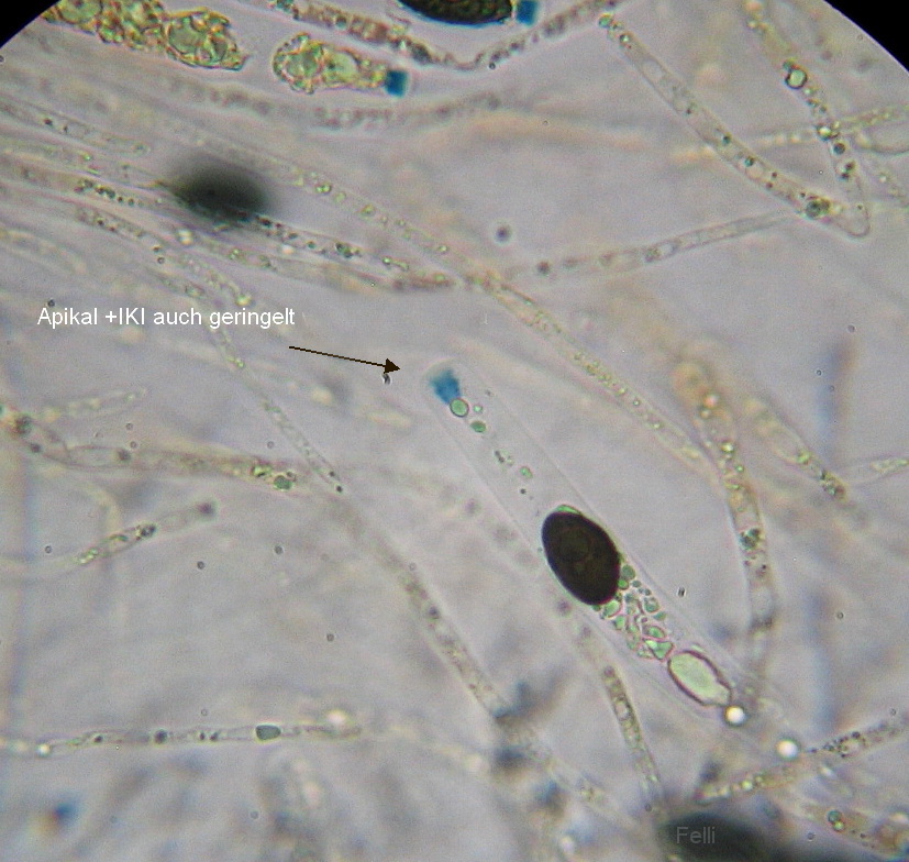 Mit KOH 3% leicht grau entfärbend, aber kaum zu erkennen.