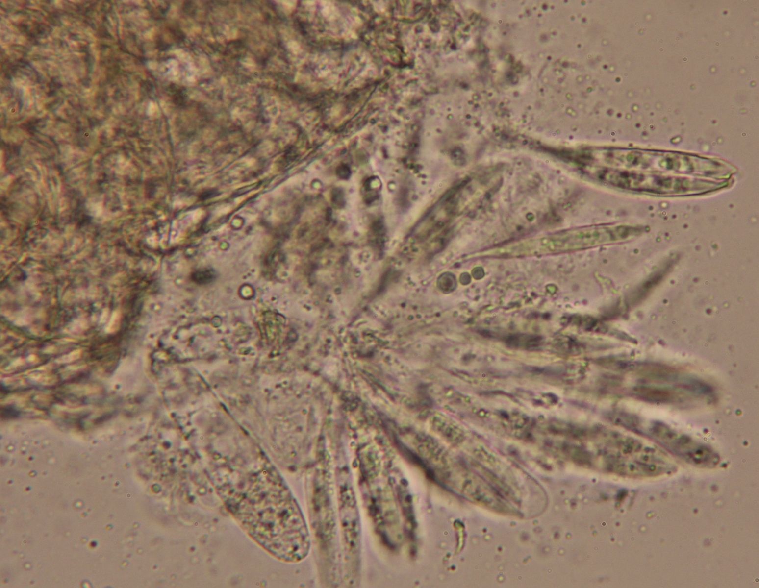 Asci ( 48-52 x 10-12µm) und Sporen mit Septierung im untern Drittel