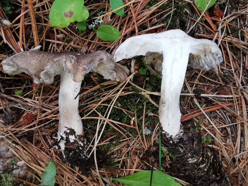 Außerdem müssten bei Tricholoma terreum ohne irgendeine zweinadlige Kiefer in der Nähe auch die Warnlichter angehen, auch wenn das lt. Lit. vorkommen soll. Aber wie gesagt: Trich.terr ist ein Aggregat, das bislang nicht ausreichend bearbeitet ist, um es sinnvoll morphologisch aufzulösen.