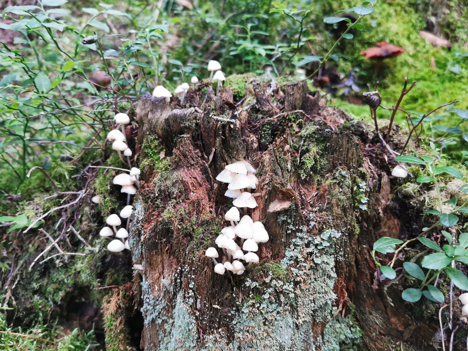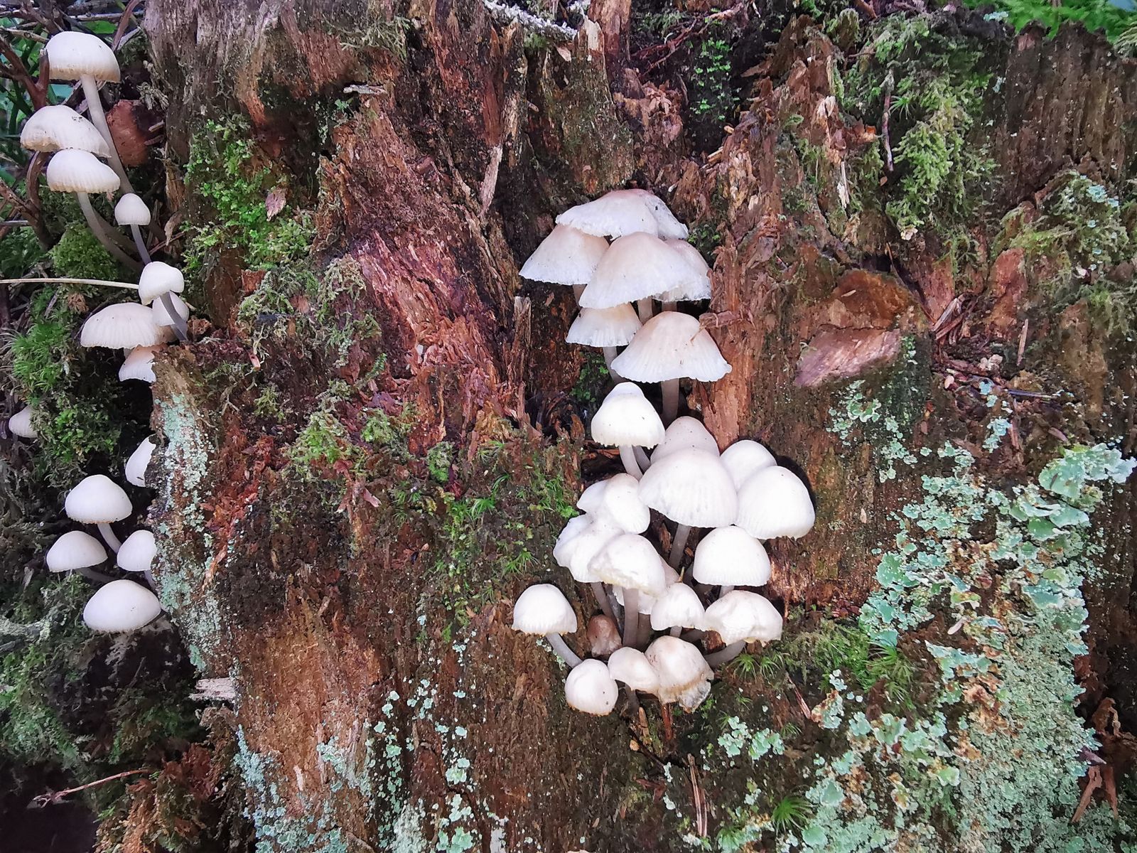 Auf Totholz fand ich dann noch, wie ich vermute, Helmlinge: