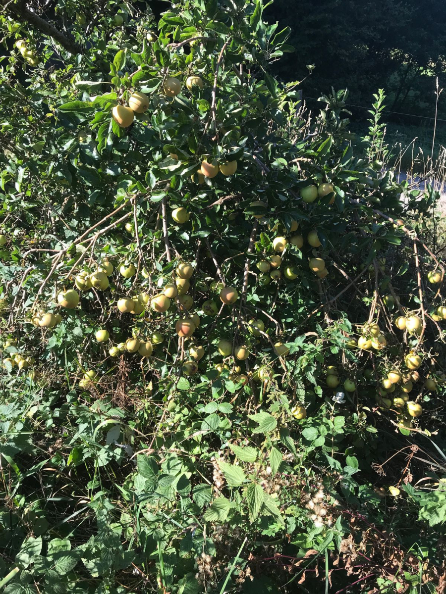 ich habe heute im Wald einen Apfelbaum gefunden. Besser gesagt Strauch.