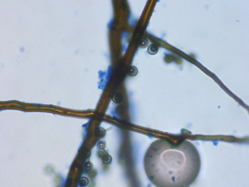 Sporen mit Anhängsel und sehr fein warzig, man sieht es kaum.
