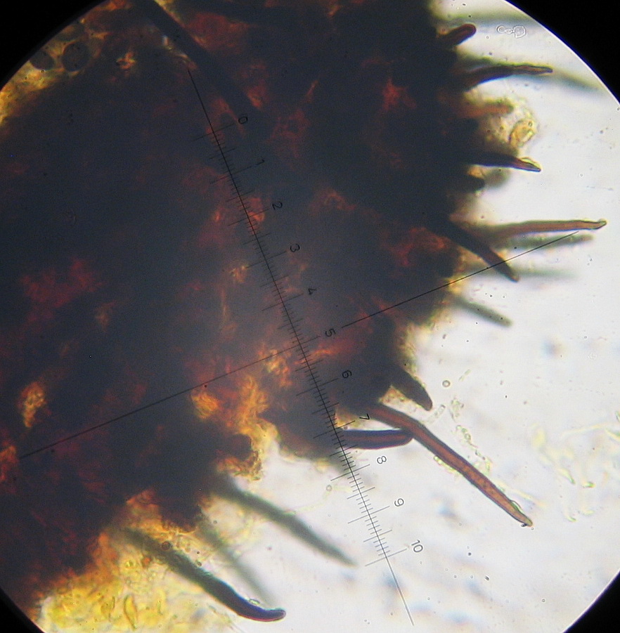 Seten 10-50 x 3-4µ, braun, dickwandig, unseptiert, apikal leicht abgerundet zugespitzt,