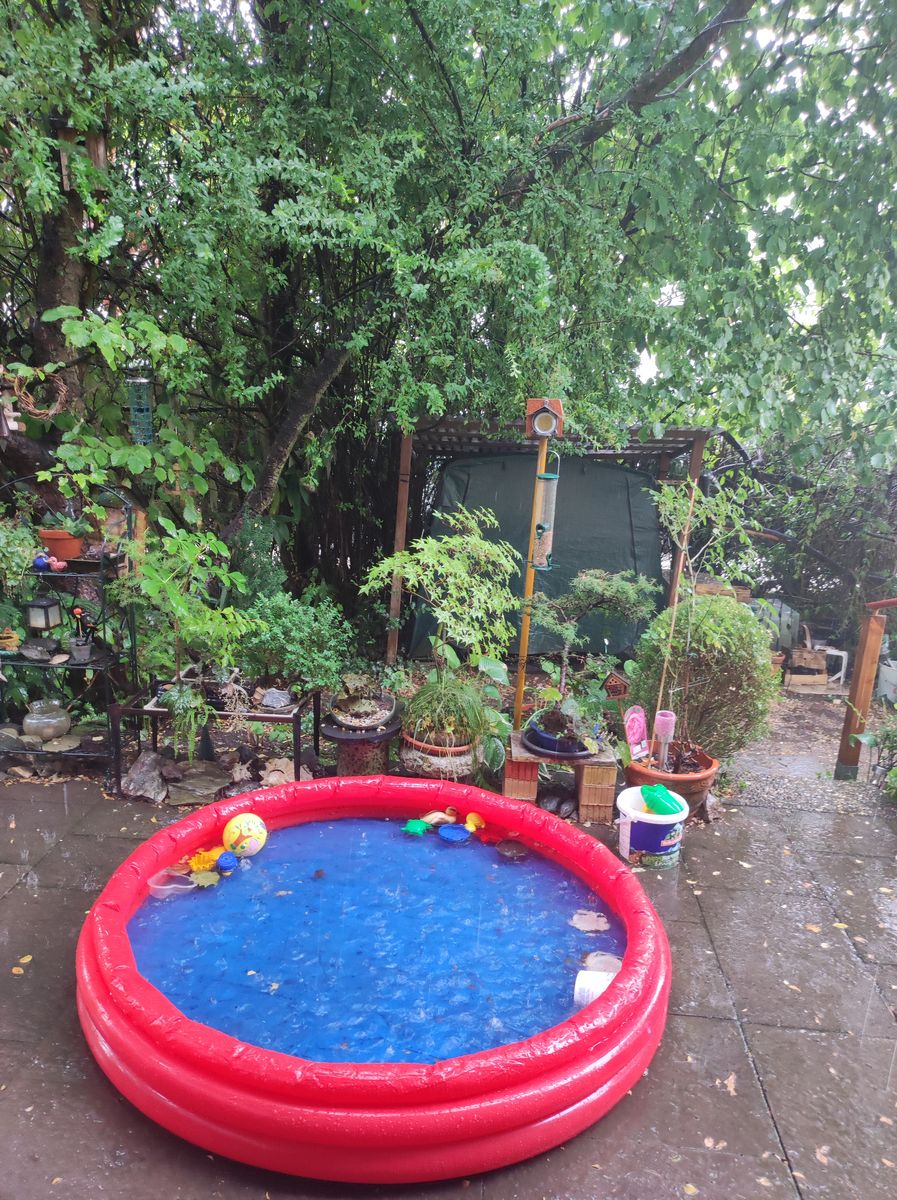 Neeeneee, das Becken war schon gefüllt - mit leicht temperiertem Leitungswasser fürs plantschende kleine Enkelchen!