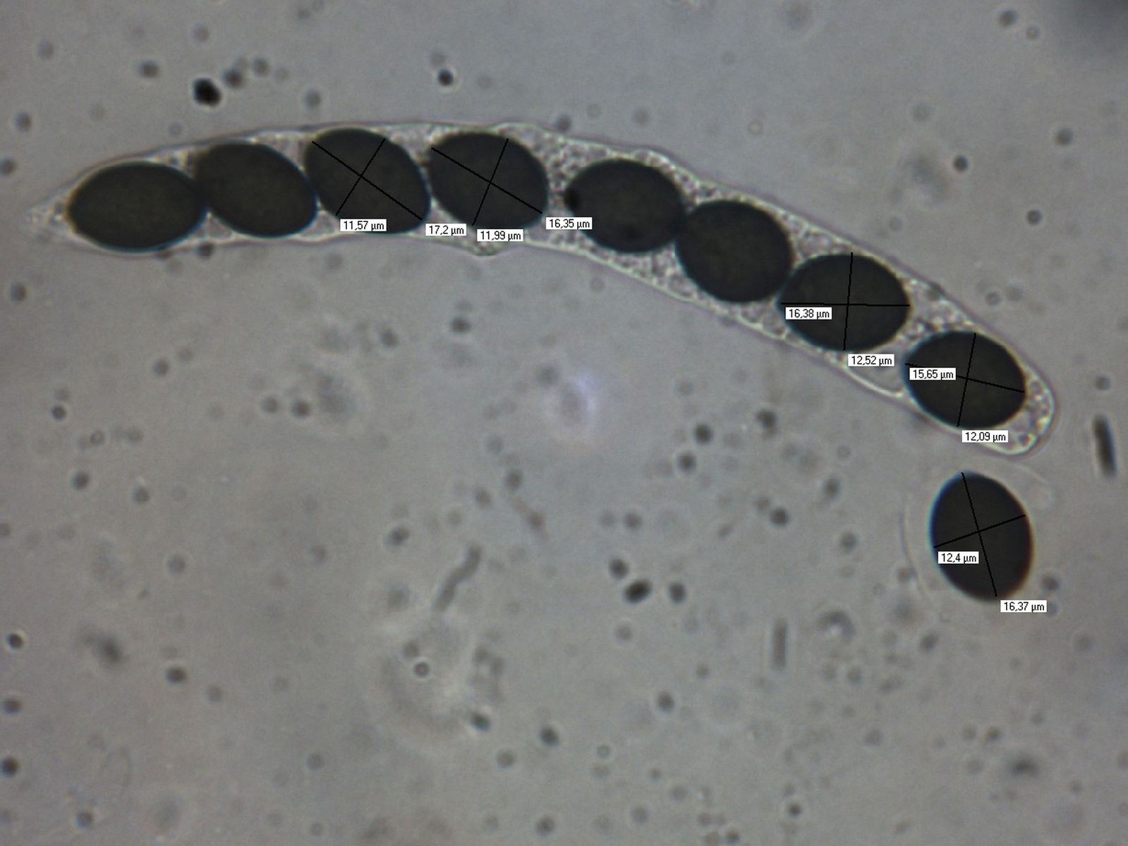 Sporen: 15,6 - 19 x 11,5 - 12,5 µm