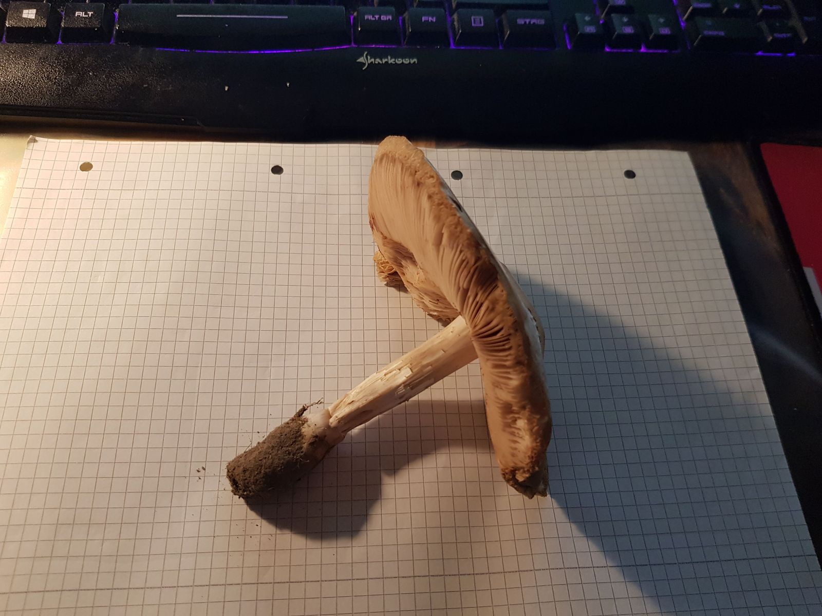 Ohne viel Umschweife zur Frage: Ich hab den hier in der Nähe eines Baumstumpfes im Garten eines Freundes gefunden. Hab auch schon verschiedene Bücher und Seiten konsultiert, aber so ganz 100% bin ich mir trotzdem nicht. Mein ehester Gedanke wär jetzt ein Rehbrauner Dachpilz (PLUTEUS CERVINUS) oder vielleicht auch eine andere Art Dachpilz. Ich find ja nur diese helle Hutfarbe irritierend, Was meint ihr?