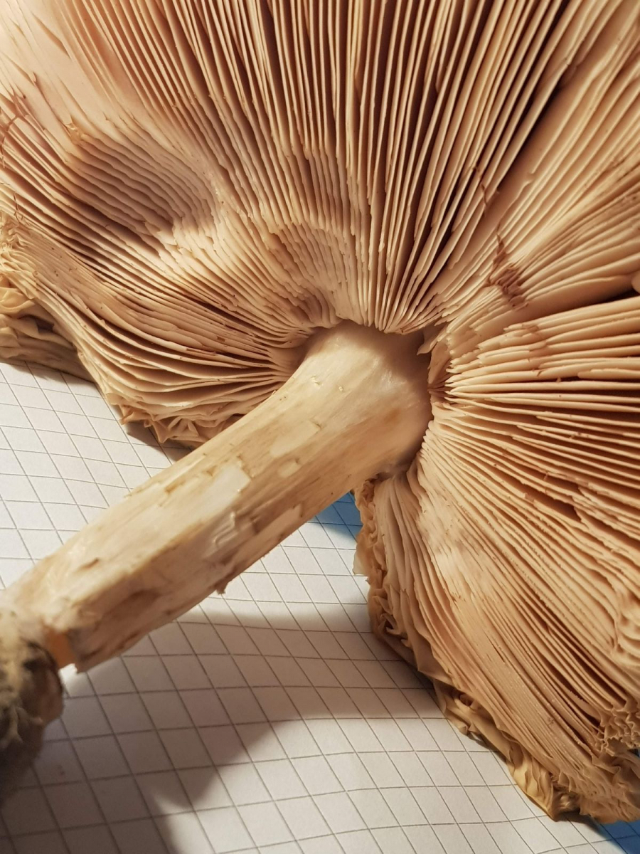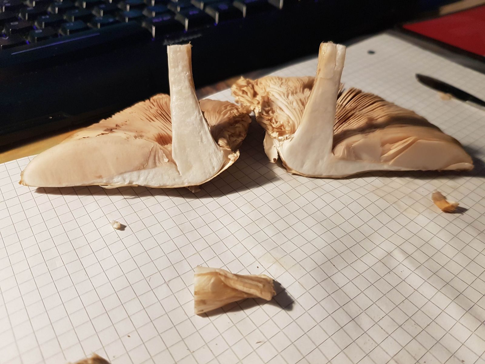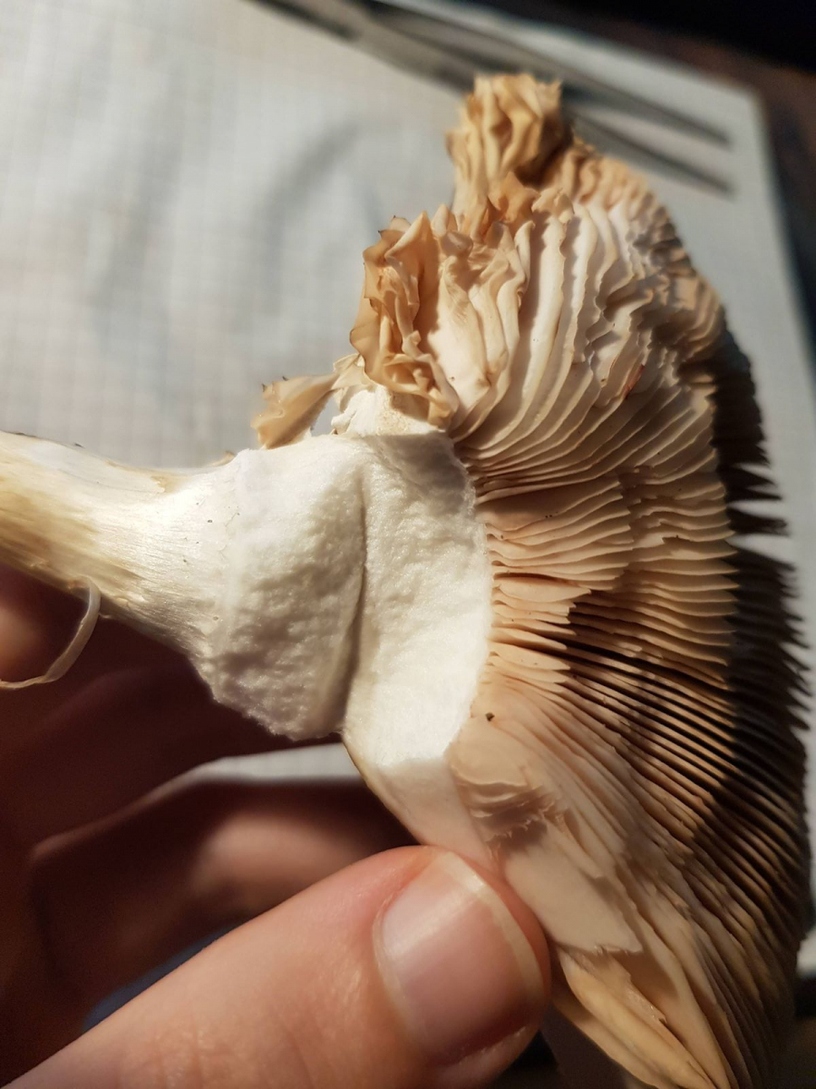 - Stielfleisch brüchig aber nicht milchend, glänzt irgendwie komisch