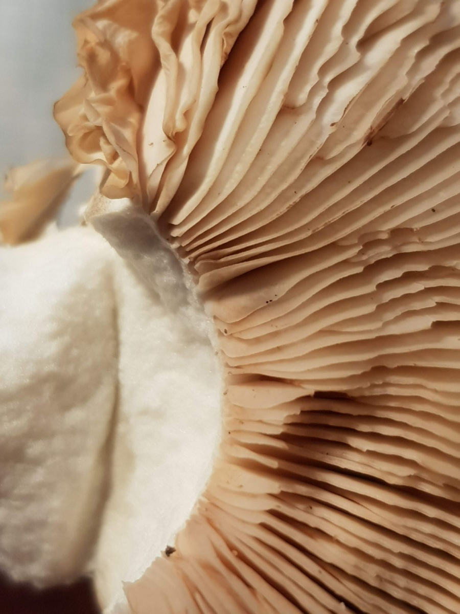- Lamellen scheinbar frei und eng stehend mit unterschiedlich langen Zwischenlamellen