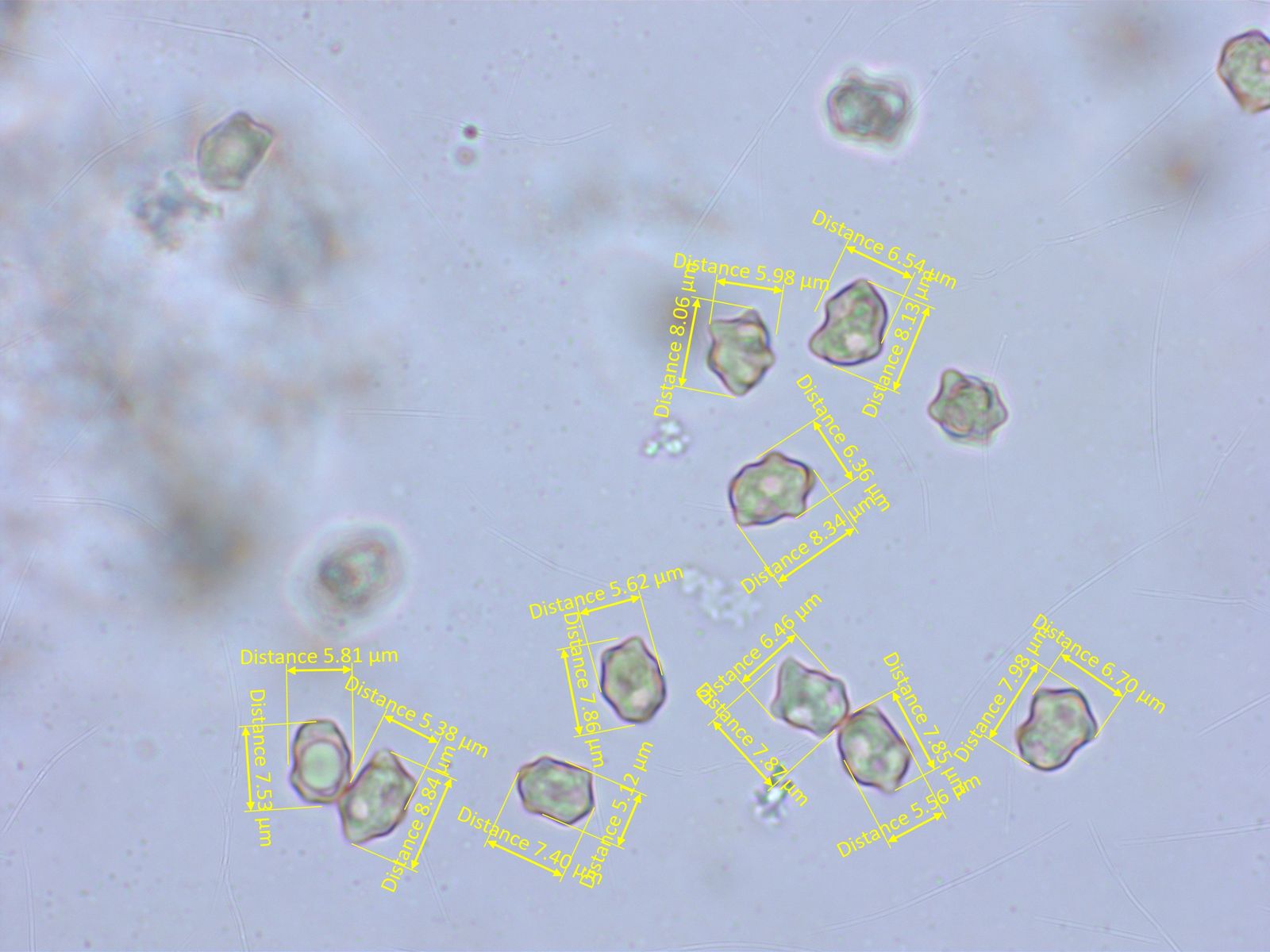 Auffallend ist, dass etwa die Hälfte der Sporen auffallend lang und schlank ist, Koeffizient fast bis 3.