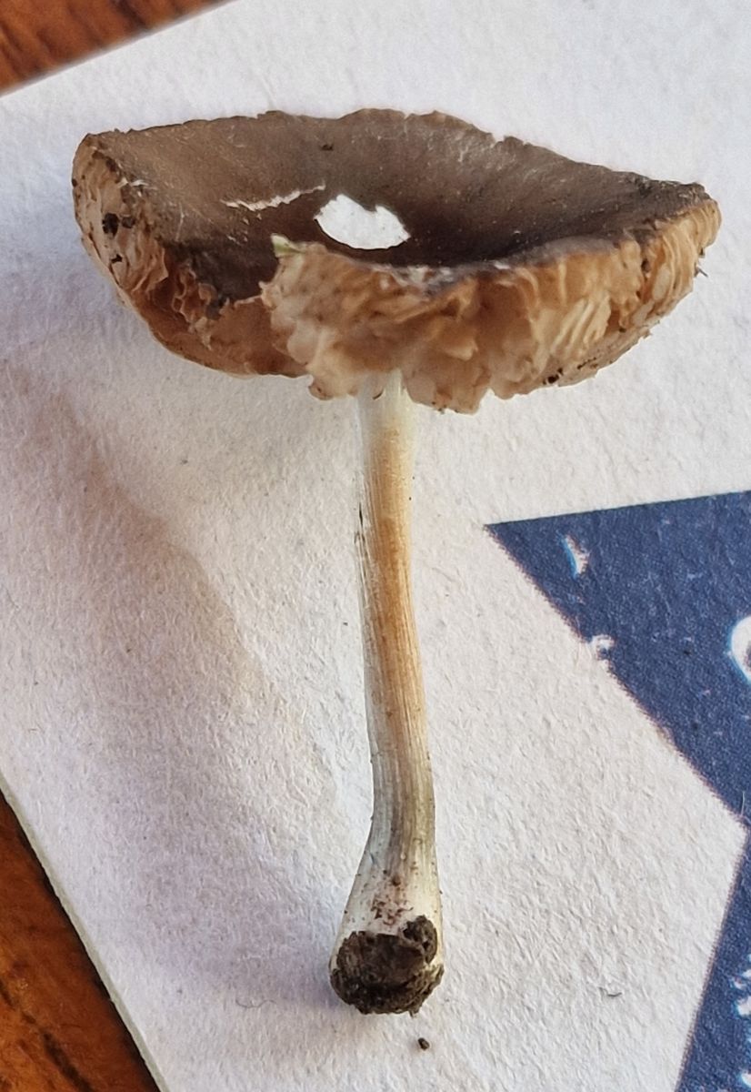am Sonntag hatten wir eine Wanderung in einem Auenwald und dort wurde dieser kleine 1,5 cm im Durchmesser Dachpilz gefunden. Vielleicht kann man ihn noch bestimmen, vielen Dank!