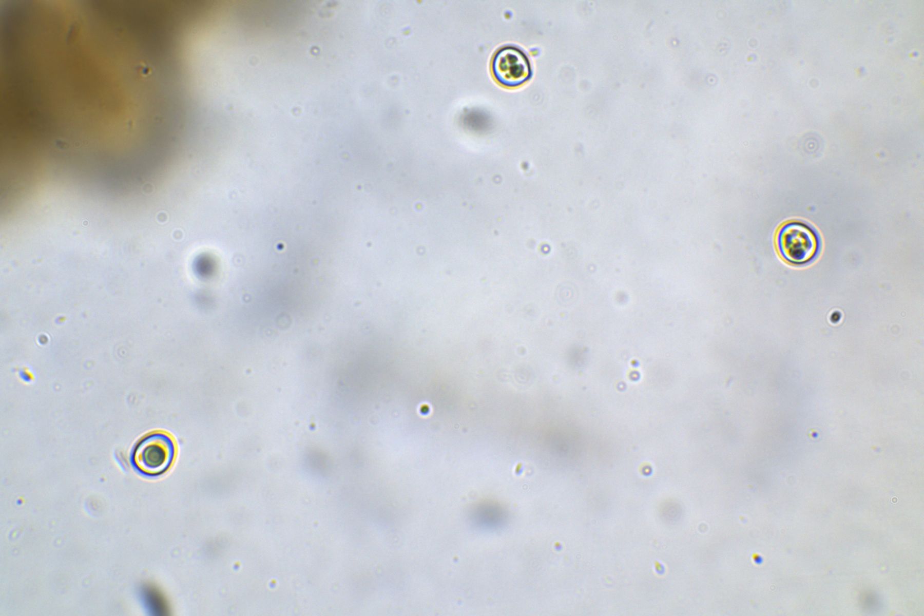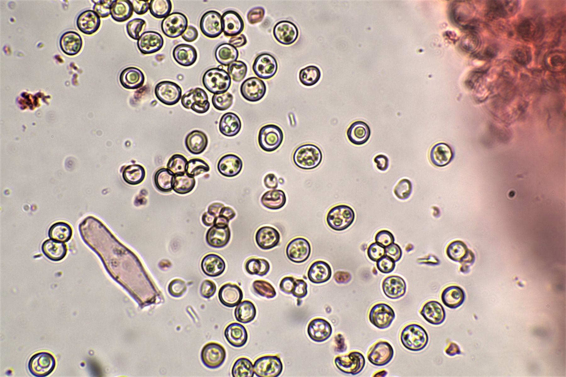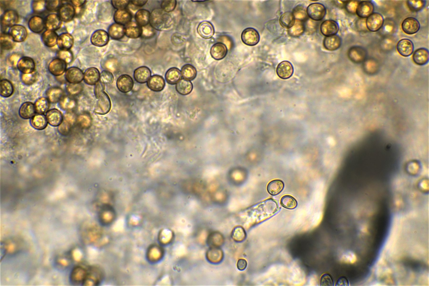 rundliche bis Birnenförmige bräunliche Zellen, manche Spitzen sahen aus wie Zitronen,
